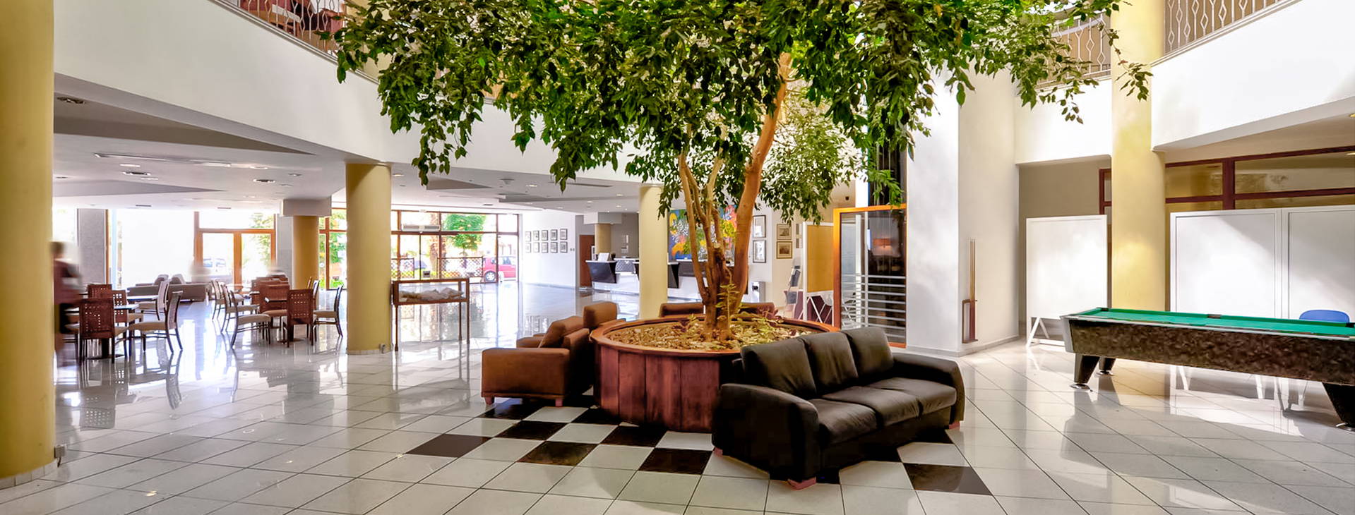 Hodinová recepcia s priestrannou vstupnou halou, výťah, hlavná reštaurácia, 2 bary: bar pri bazéne a bar na pláži, 2 bazény vrátane jedného s oddelenou detskou časťou a jedného vnútorného v kúpeľnom centre, minimarket, za príplatok: procedúry v kúpeľnom centre, práčovňa a požičovňa áut. Okrem toho je tu náš vlastný Figloklub, ktorý ponúka animácie, hry a aktivity pre deti v poľskom jazyku (od polovice júna do polovice septembra).