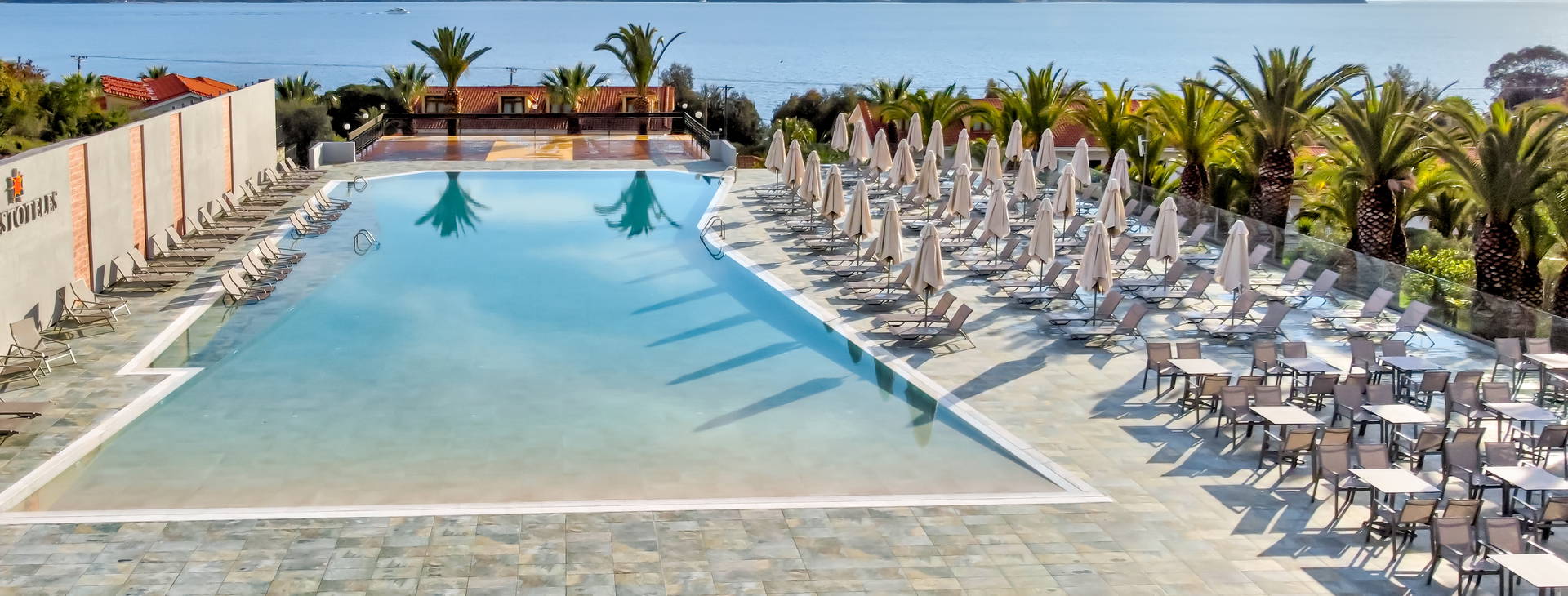 Jedinečný, elegantný komplex sa nachádza v tichej a malebnej oblasti s výhľadom na more a hory, neďaleko malej dedinky Ouranoupolis na polostrove Athos. Približne 3 km od centra s obchodmi, barmi a atmosférickými kaviarňami. Približne 100 m od hotela sa nachádza zastávka verejnej dopravy. Transfer z letiska v Solúne do hotela trvá približne 2 h. Za príplatok v hlavnej sezóne hotel ponúka kyvadlovú dopravu do Ouranoupoli (približne 3 EUR). V cene nie je zahrnutá miestna turistická daň vo výške 3 EUR/izba/deň. Táto daň je povinná a platí sa priamo na recepcii pred ubytovaním klientov v hoteli.