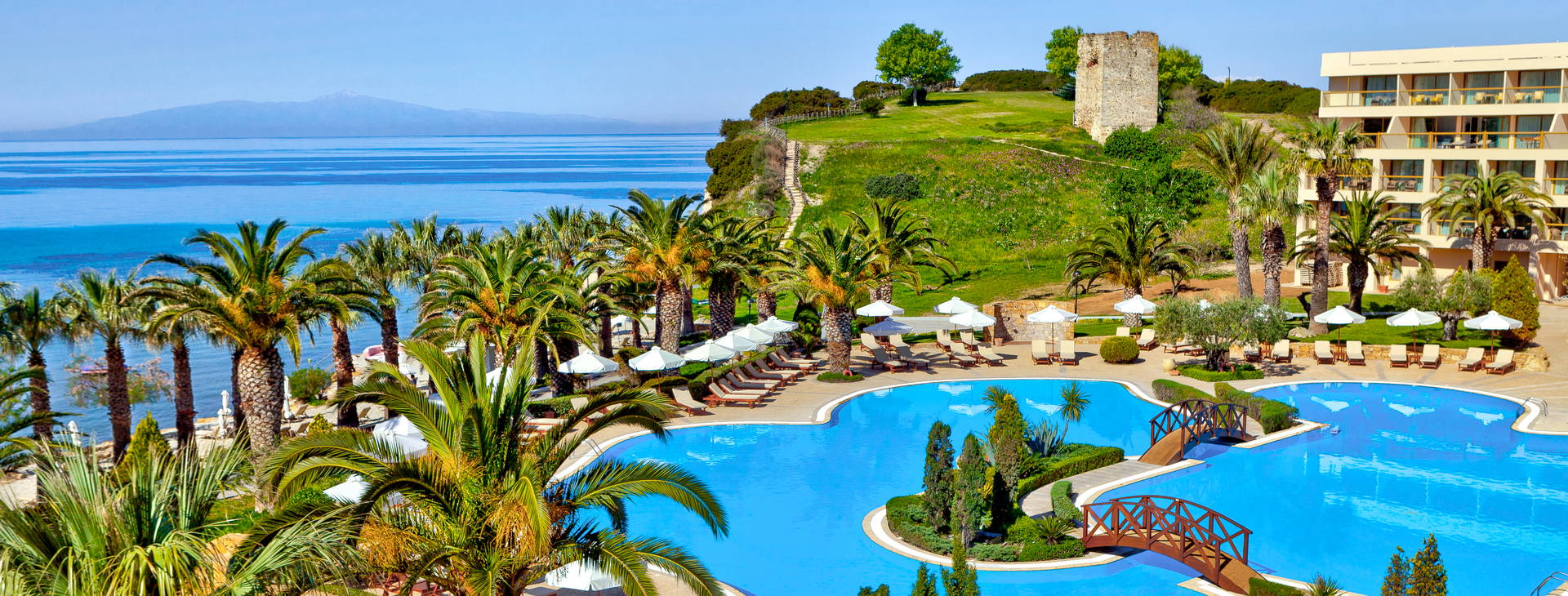 Komfortný hotel s elegantným interiérom. Krásna poloha na jednej z najkrajších pláží polostrova. Značka Sani poskytuje vysoký štandard služieb a vynikajúce hotelové vybavenie. Odporúčame ho náročným klientom.