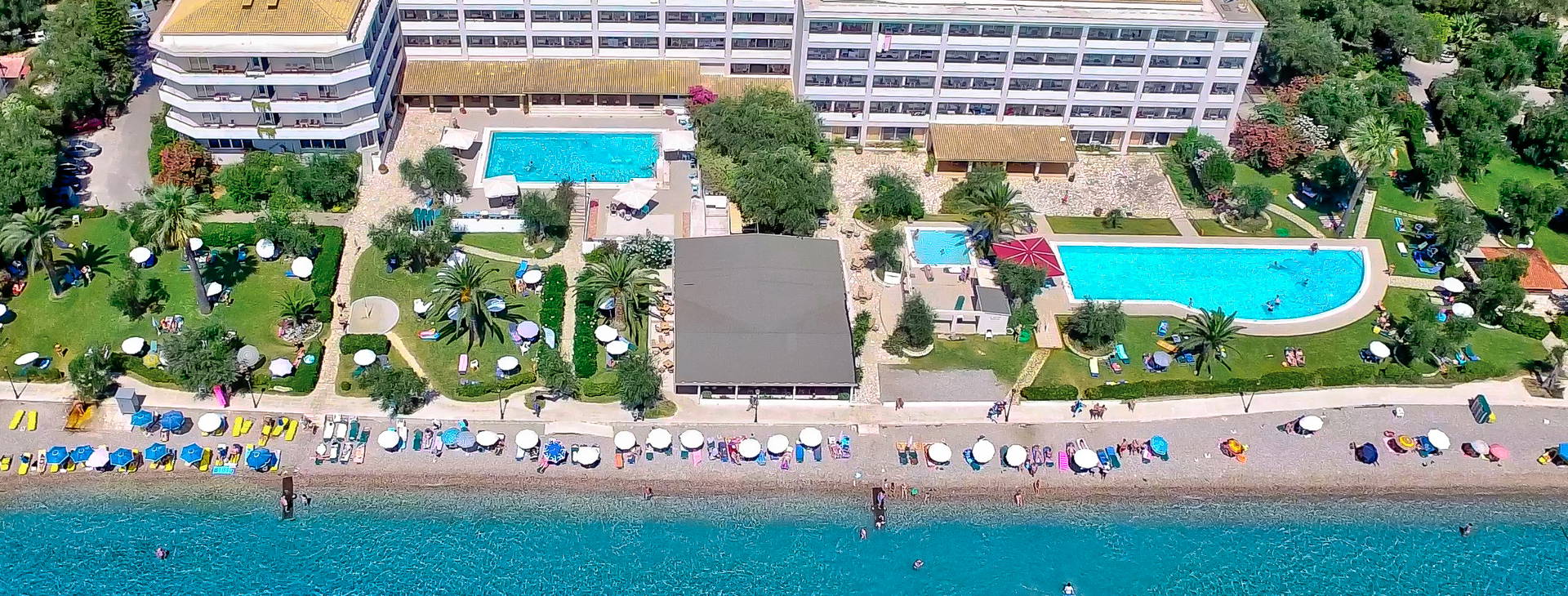 Hotel sa nachádza priamo na peknej kamienkovej pláži. Pre hostí s All inclusive sú slnečníky a ležadlá na pláži zdarma. Pre hostí s polpenziou sa účtuje poplatok (cca 2 €/lôžko).