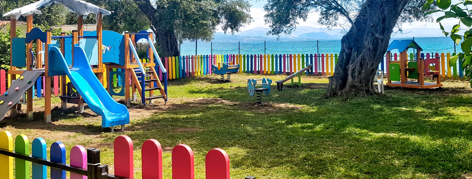 .Recepcia, reštaurácia, bar, bar pri bazéne, olivová záhrada s ležadlami a slnečníkmi, 2 bazény (jeden s morskou vodou a oddelenou vírivkou a jeden so sladkou vodou), detské brodítko, detské ihrisko. Taverna a'la carte pri pláži (za poplatok).