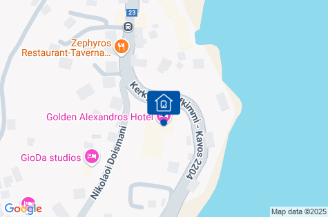 .Piesočnato-kamienková pláž je vzdialená približne 1,3 km od hotela. Okrem toho hotel poskytuje bezplatnú kyvadlovú dopravu na piesočnato-kamienkovú pláž Benitses (približne 4 km od hotela), denne medzi 10:00 a 18:00