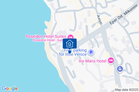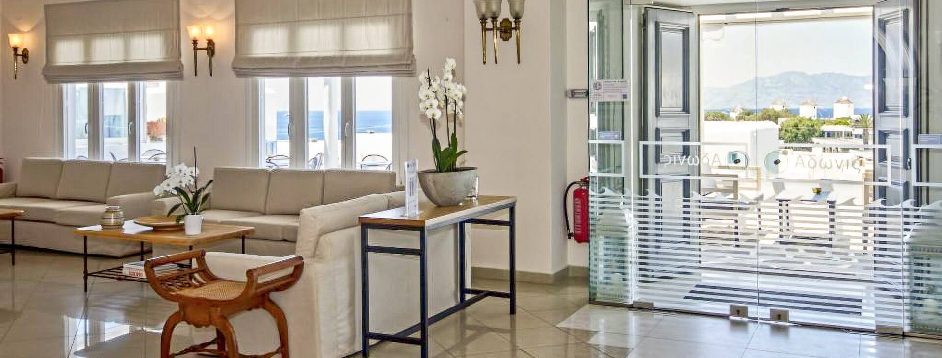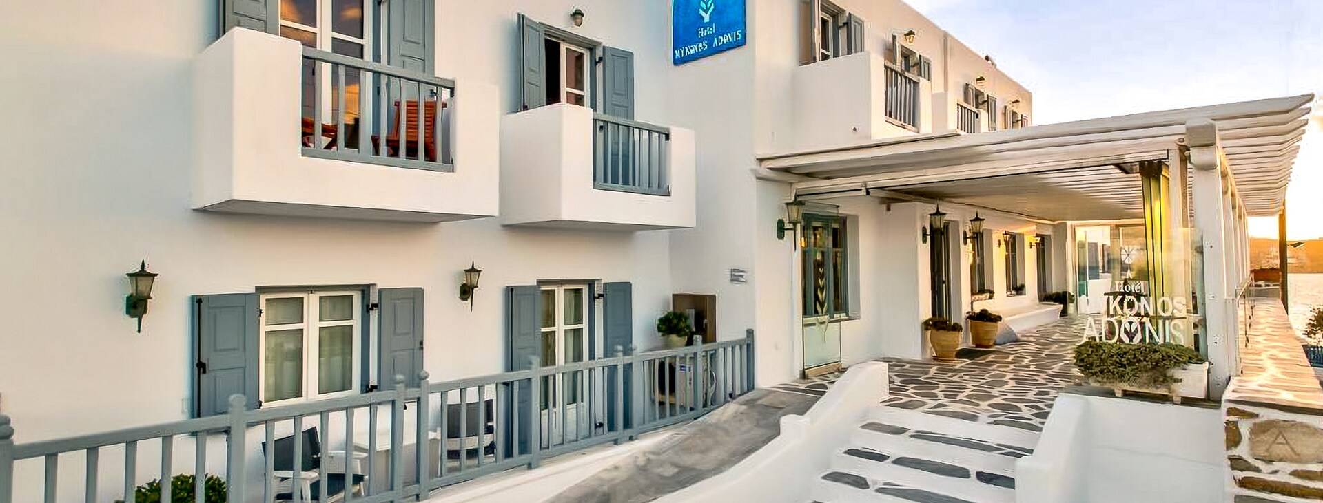 Hotel Adonis sa nachádza v blízkosti centra mesta Mykonos. Je vzdialený len niekoľko minút chôdze od očarujúcej štvrte známej ako "Malé Benátky". Priamo pri hoteli sa nachádza zastávka verejnej dopravy, na ktorú premáva kyvadlový autobus. V okolí sa nachádzajú aj miestne reštaurácie. Cena nezahŕňa miestnu turistickú daň vo výške 3 EUR/izba/deň. Táto daň je povinná a platí sa priamo na recepcii pred ubytovaním klientov v hoteli.