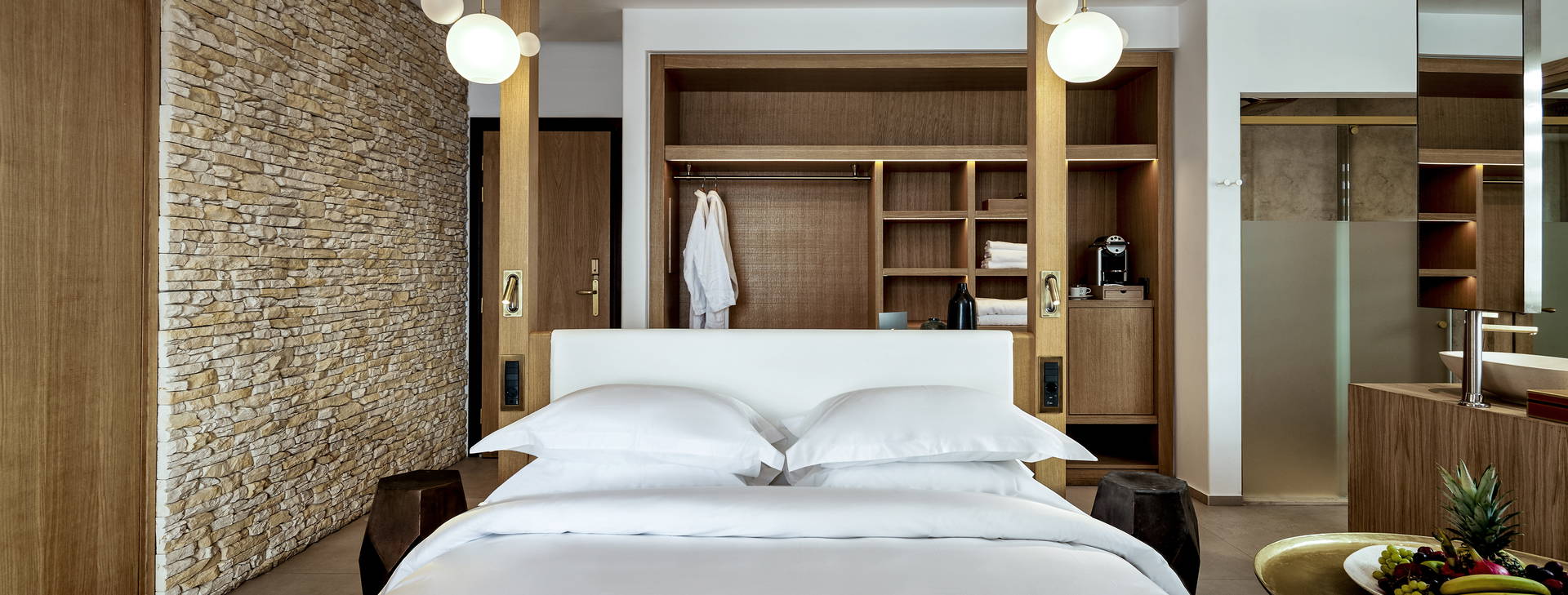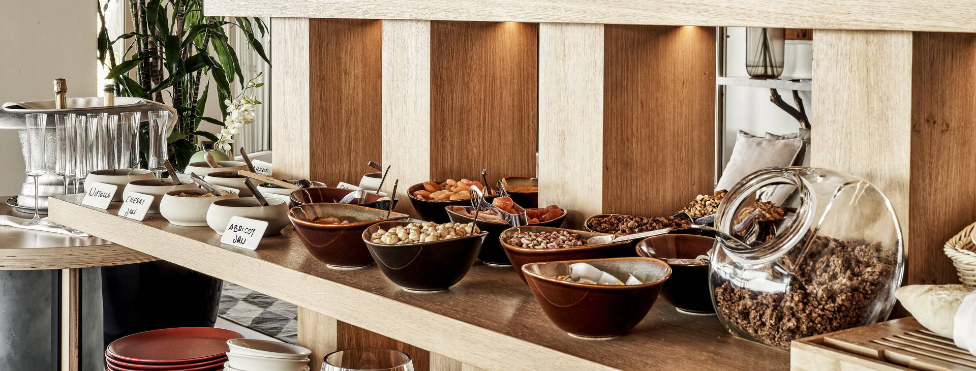Raňajky sa podávajú formou bufetu. K dispozícii je reštaurácia a'la carte, ktorá podáva jedlá stredomorskej a medzinárodnej kuchyne.