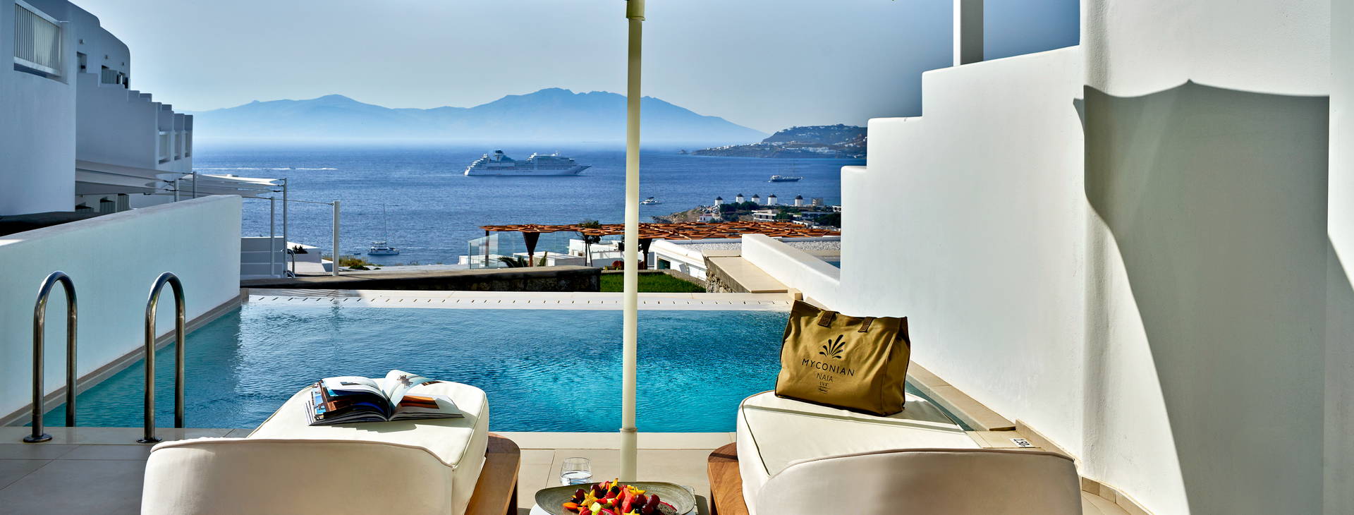 Luxusný hotel Myconian Naia je určený len pre dospelých. Nachádza sa v blízkosti mnohých atrakcií ostrova. Len krátkou prechádzkou sa dostanete do "Malých Benátok", ktoré vás potešia svojimi kľukatými a úzkymi uličkami. V blízkosti sa nachádzajú aj elegantné butiky, obchody a reštaurácie.