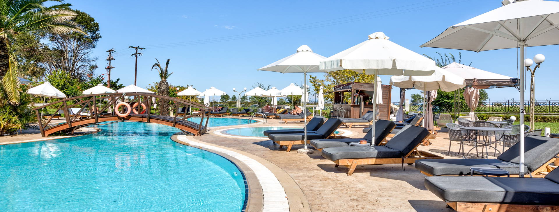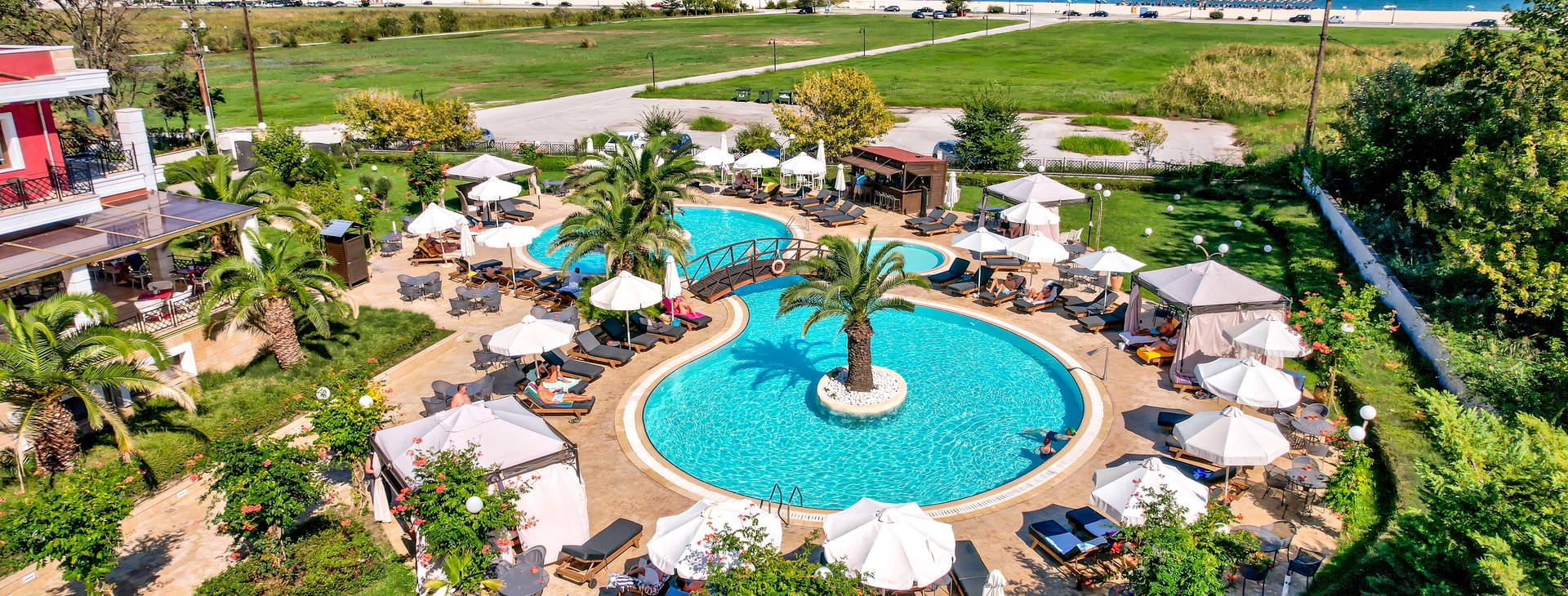 Architektonicky zaujímavý, vkusne navrhnutý hotel len pre dospelých od 16 rokov sa nachádza cca 120 m od piesočnatej, širokej pláže (na pláž sa dostanete cez ulicu), cca 1 km od centra Paralie, kde sa nachádza množstvo obchodov, barov, reštaurácií, diskotéka atď (prístup do centra Paralie cez osvetlenú promenádu). (prístup do centra Paralie cez osvetlenú promenádu). Transfer z letiska do hotela trvá približne 1 h 50 min. Pred hotelom (len v hlavnej sezóne) a v centre Paralie sa nachádza zastávka autobusu verejnej dopravy, ktorým sa môžete dostať do ďalších miest Olympskej riviéry.