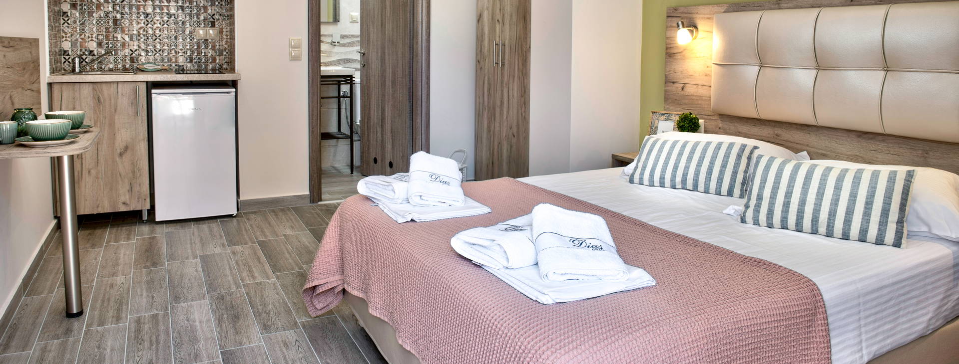 Znovu zariadené izby vysokého štandardu, dokončené s dôrazom na detail. Apartmány Dias sú ideálne pre klientov, ktorí si na dovolenke cenia nezávislosť - dobre vybavený kuchynský kút vám dáva možnosť pripraviť si vlastné jedlo. Odporúčame!