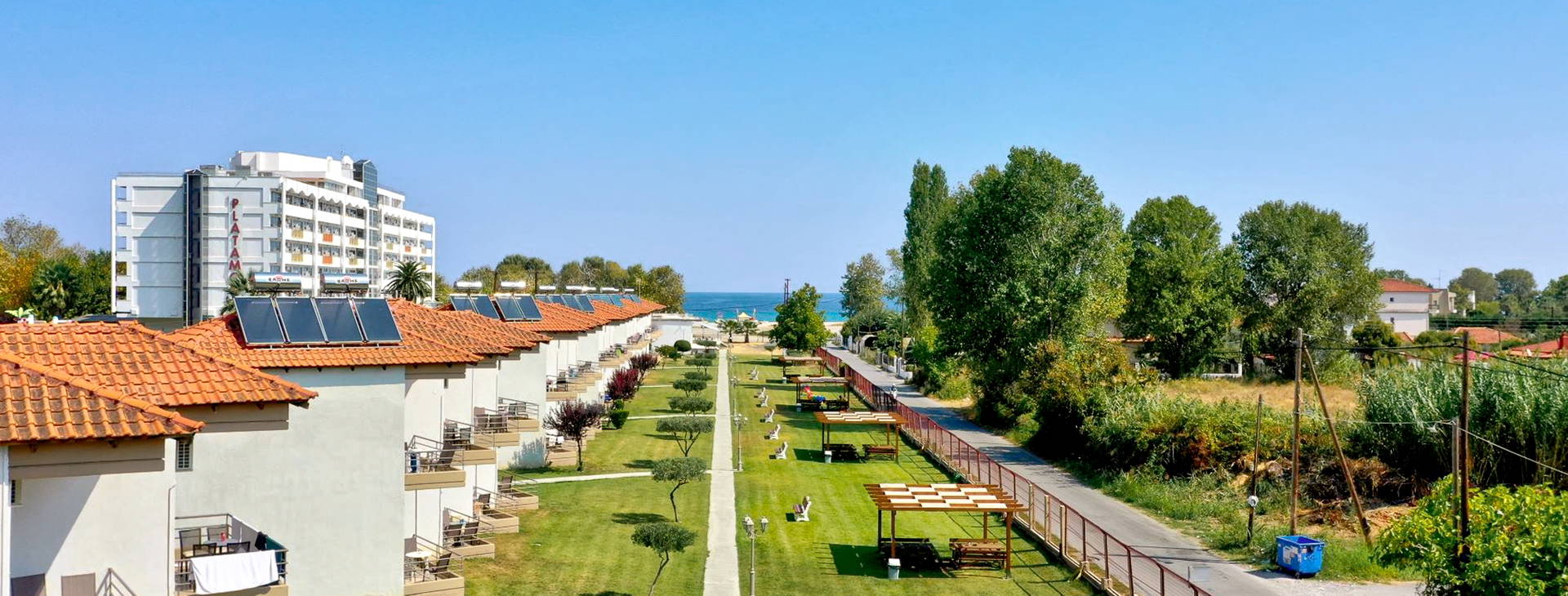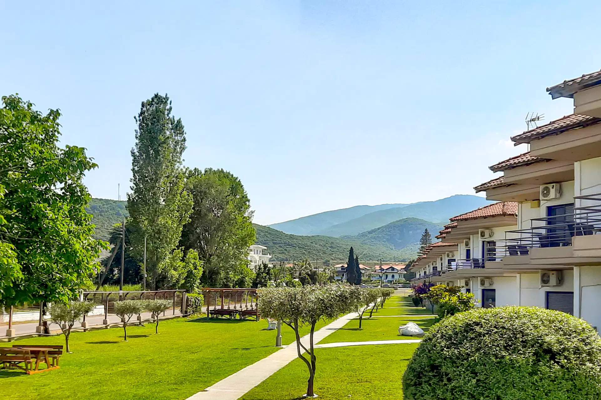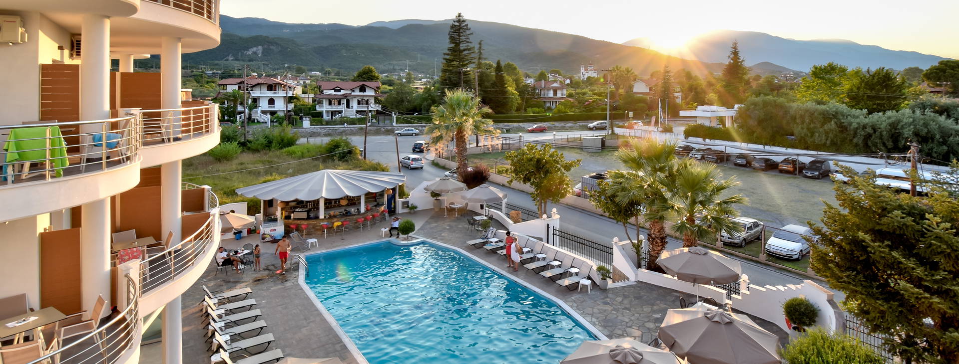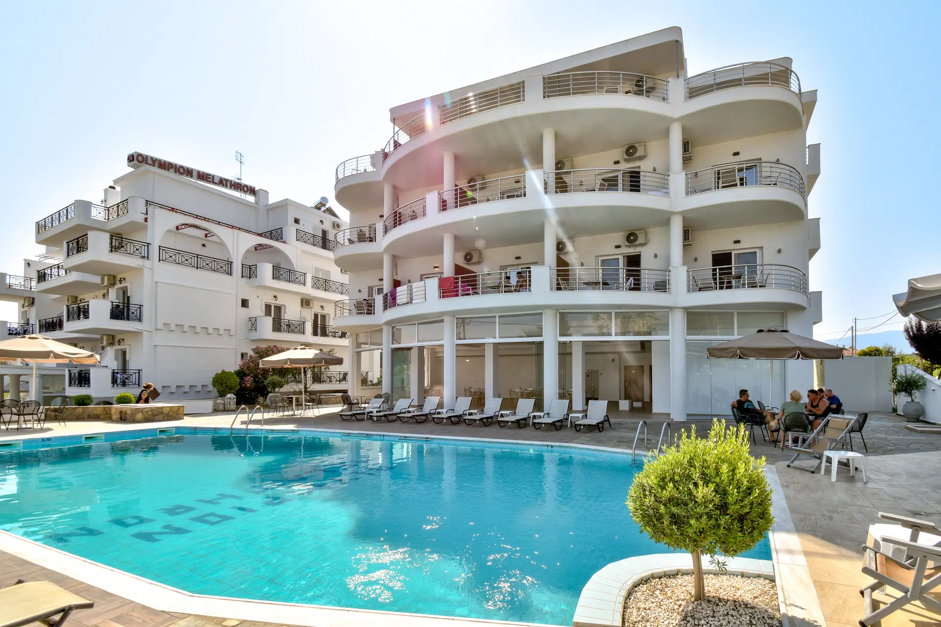 Ompion Melathron sa nachádza v obci Platamonas. Od centra mesta je vzdialený približne 900 metrov. Okrem toho je dedina Nei Pori vzdialená len približne 1 km. V blízkosti hotela sa nachádza množstvo reštaurácií, barov a kaviarní. Hotel a letisko v Solúne sú od seba vzdialené 135 km.