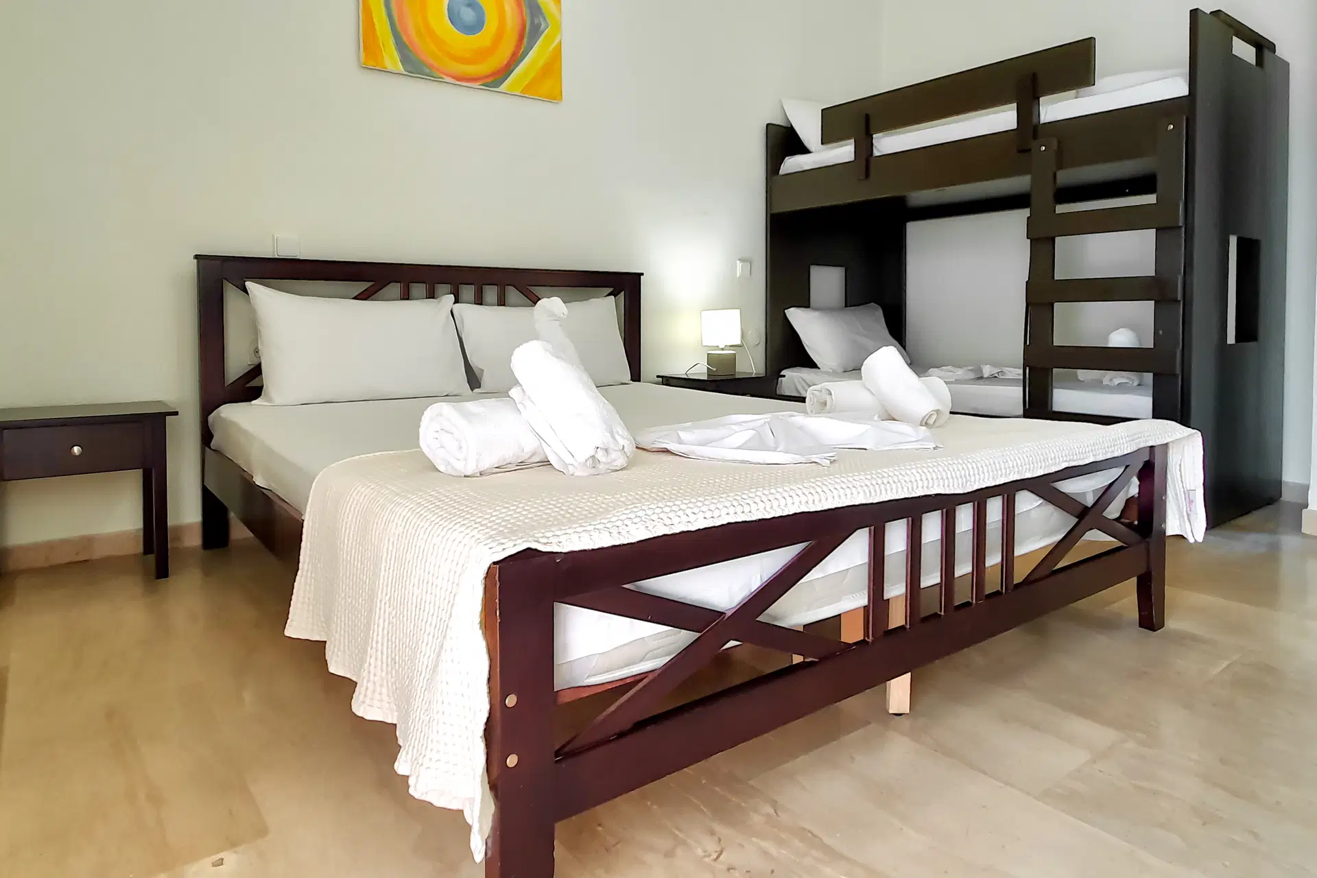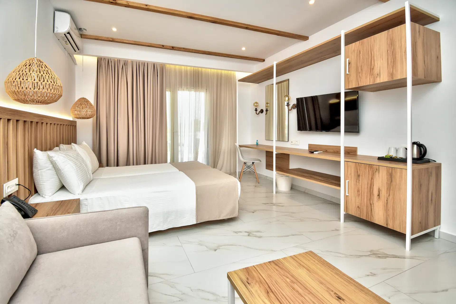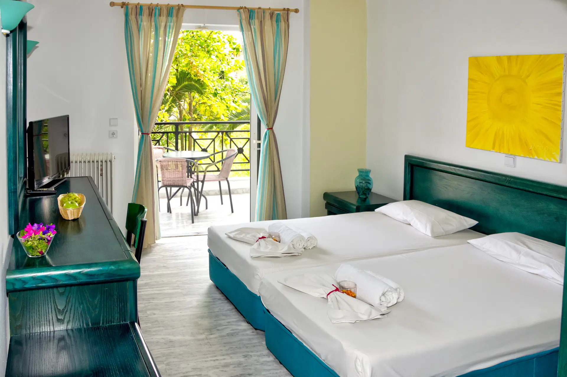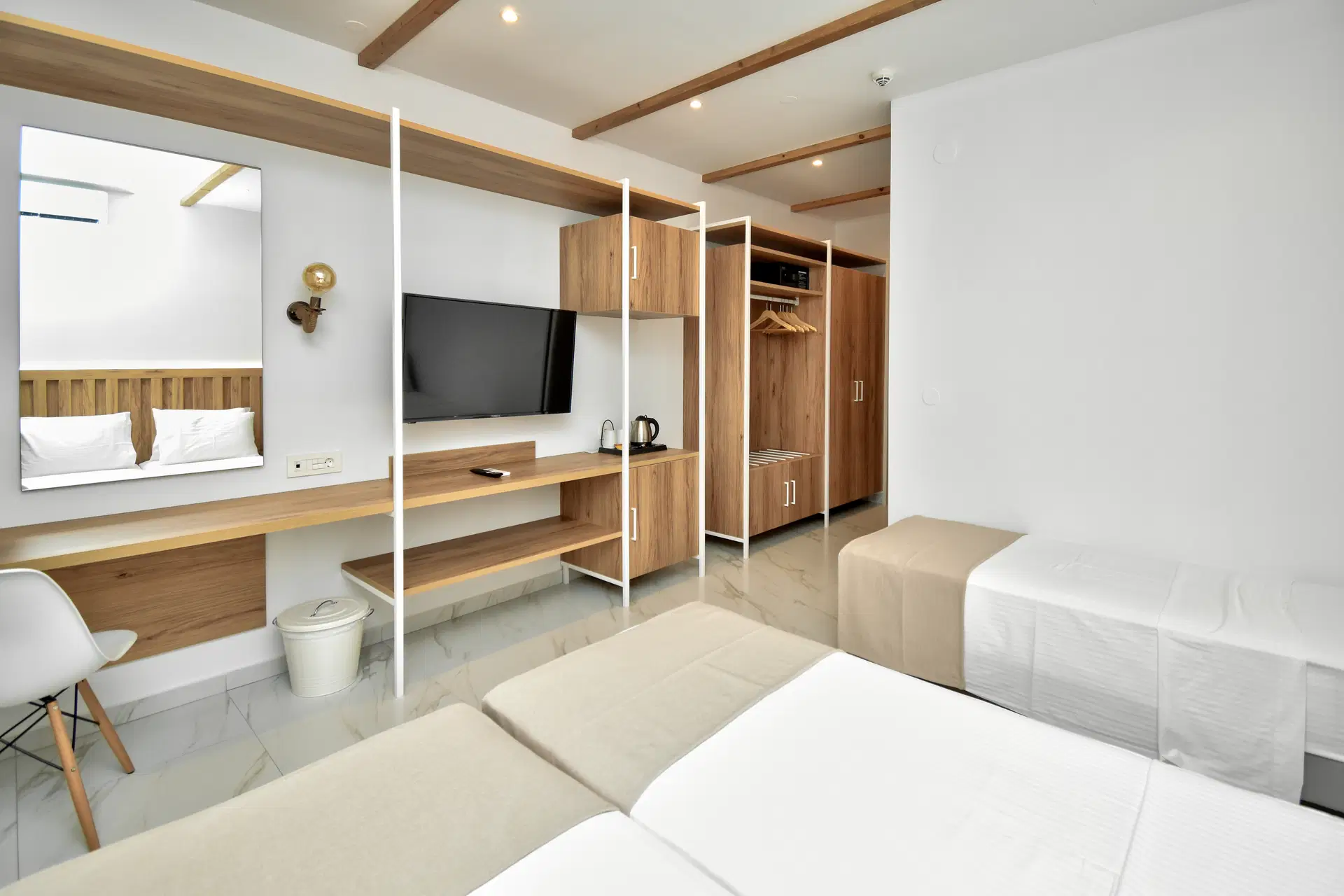 Široká piesočnatá pláž sa nachádza približne 1,5 km od hotela. 200 m od hotela. Bola jej udelená modrá vlajka. Plážový servis - za príplatok (cca 8 eur/set).