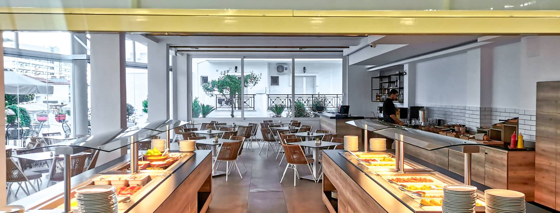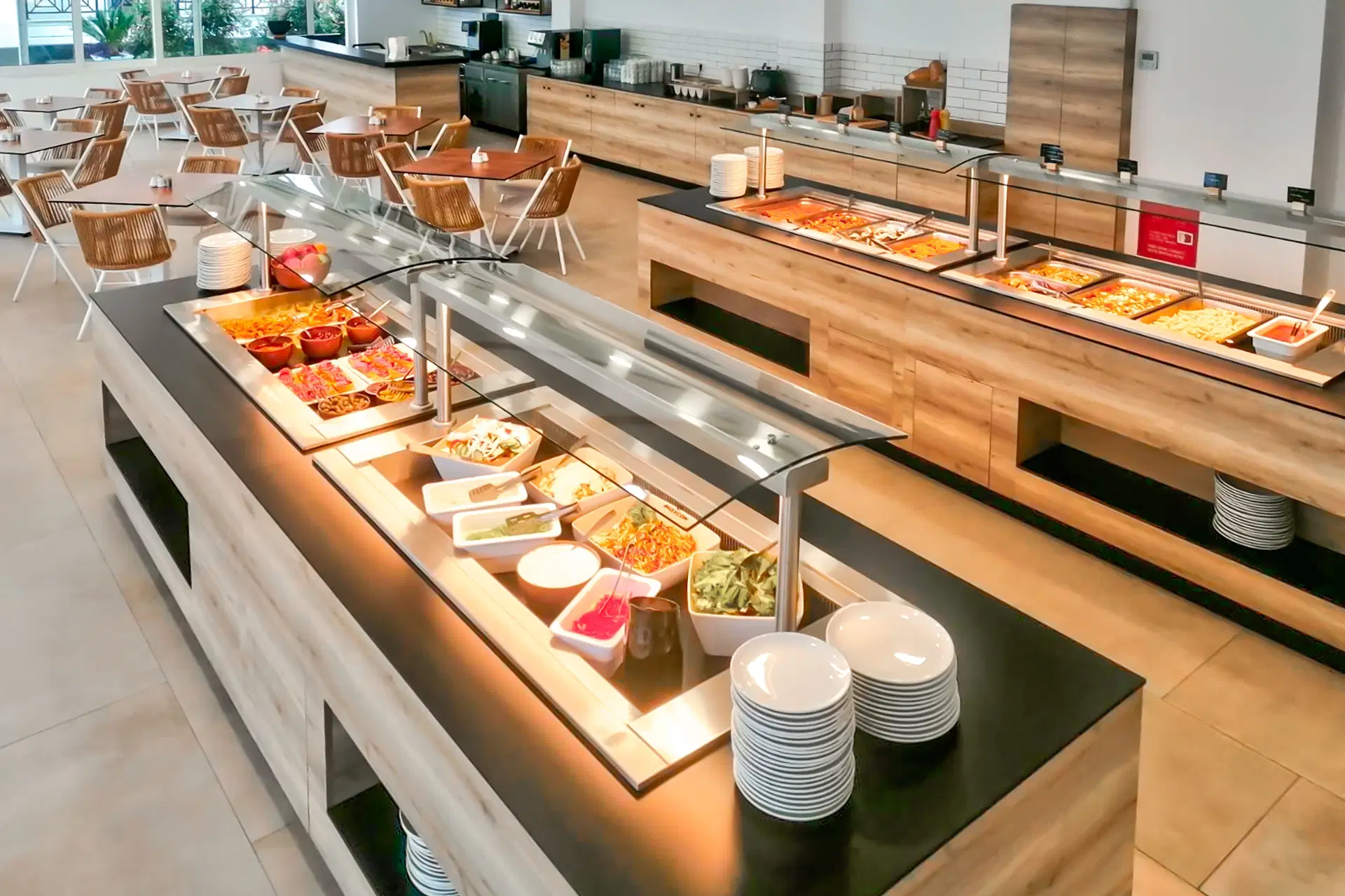 Skladba All Inclusive: raňajky (07:30-10:00), obed (13:30-15:00) a večera (18:30-20:30) podávané formou bufetu v hlavnej reštaurácii. Okrem toho sa nealkoholické nápoje a miestne alkoholické nápoje podávajú v bare pri bazéne (10:00-22:00). K dispozícii je aj reštaurácia a'la carte, kde sa podáva občerstvenie (otvorené: 13:00 - 15:00, za poplatok).