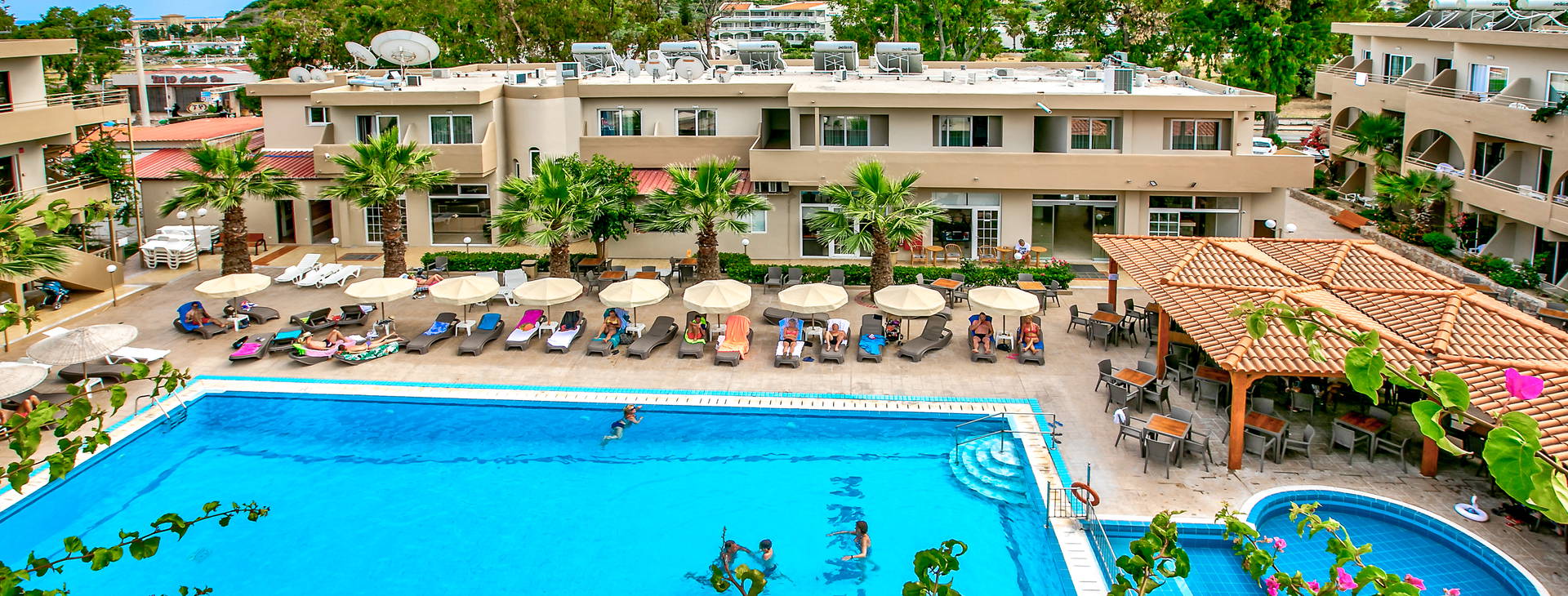 Hotel sa nachádza v centre mesta Kolymbia, hneď vedľa hlavnej ulice. V blízkosti sa nachádzajú obchody, reštaurácie, bary, kaviarne, zábavné podniky a požičovne áut. Vzdialenosť od letiska je približne 28 km, zatiaľ čo vzdialenosť od mesta Rodos s historickým starým mestom je približne 25 km.