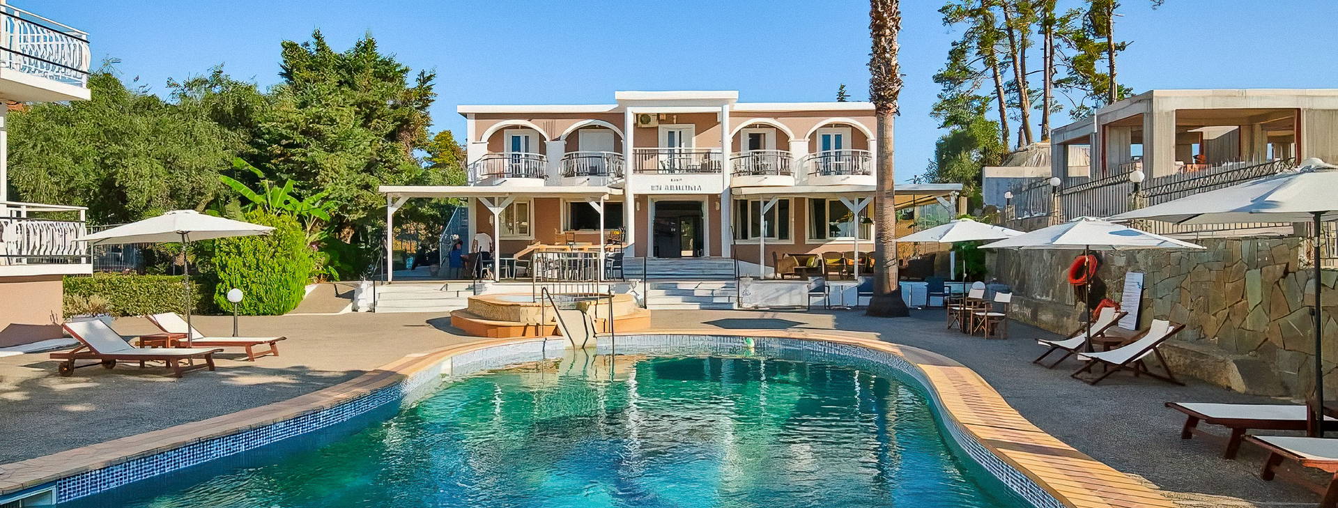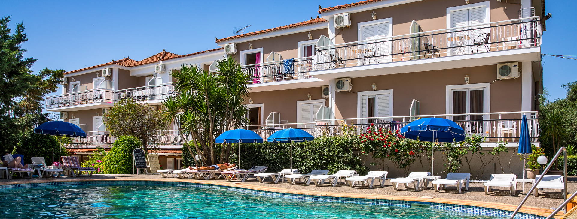 Hotel má skvelú polohu v tichom kúte, ale veľmi blízko centra dedinky Laganas, len asi 600 m od živej hlavnej ulice s množstvom barov, reštaurácií a obchodov. Má vynikajúce miestne dopravné spojenie (autobusová zastávka cca 600 m) alebo taxi do okolitých dedín, pričom hlavné mesto Zakynthos je vzdialené len cca 8 km. Približne 6,5 km od letiska.