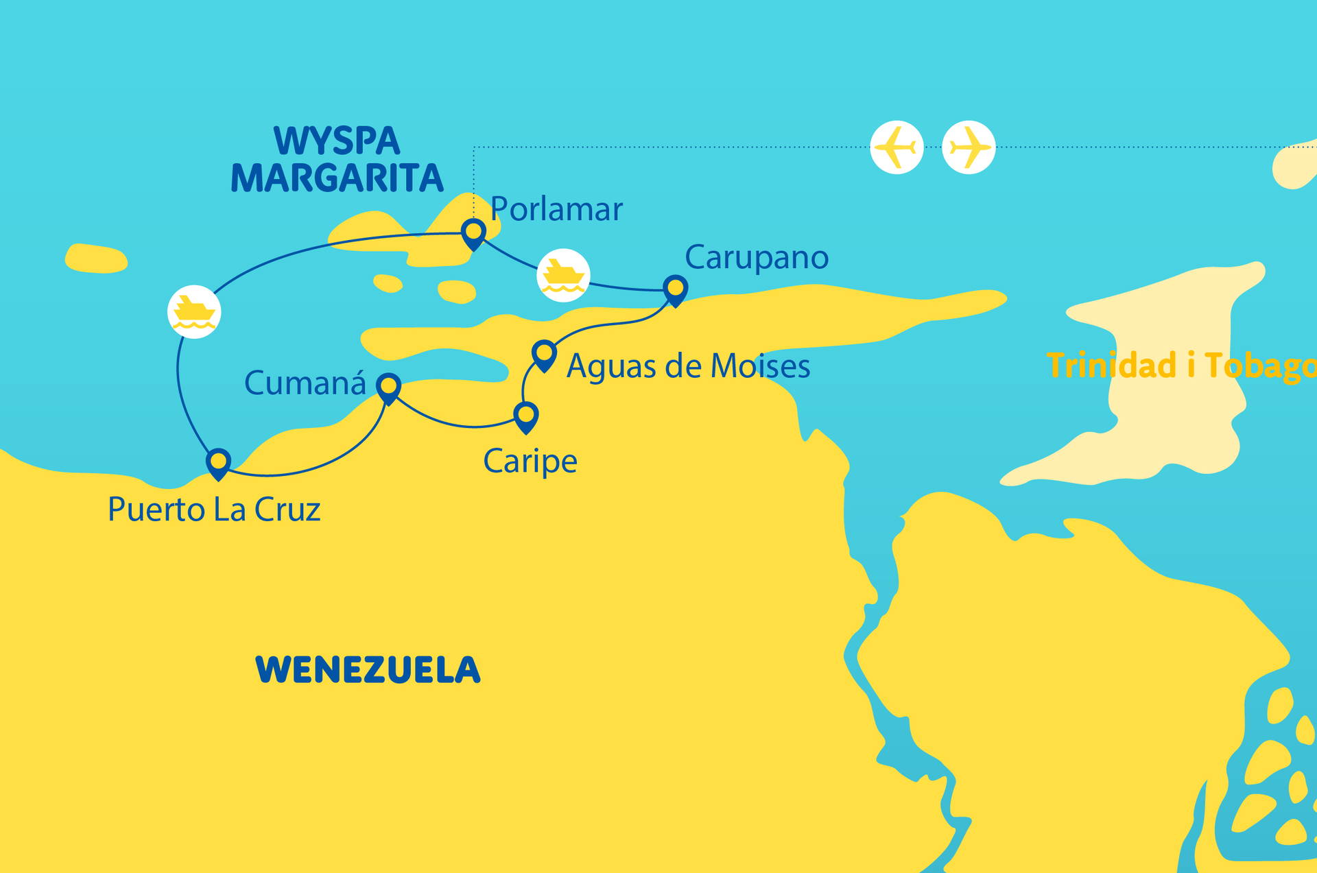 Základní cena zahrnuje: přelet charterovým letadlem společnosti PLUS ULTRA na/z ostrov Margarita (přímý let), letištní taxy, transfery: letiště - hotel - letiště, turistický program (viz níže), vnitřní přelety dle programu, ubytování v hotelech dle programu (7 nocí); stravování během poznávací části: snídaně a večeře (většina jídel s nápoji, místní čerstvě vymačkané džusy, voda), služby polského zástupce během odbavení na letišti, průvodce - vedoucího skupiny během poznávací části, balíček pojištění TU Europa varianta základní (úrazové pojištění a léčebné výlohy, trvalé následky, asistenční služby a pojištění zavazadel).