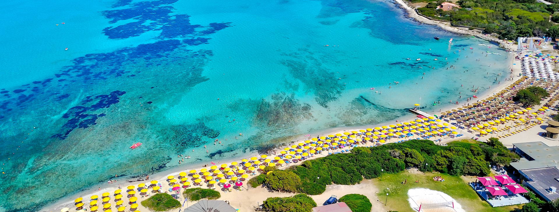 Približne 600 m od širokej piesočnatej pláže La Pelosa s pozvoľným vstupom do mora, ktorá sa považuje za jednu z najkrajších na Sardínii. Na pláž vás odvezie bezplatný hotelový autobus. Na hotelovej časti pláže sú ležadlá a slnečníky k dispozícii bezplatne (okrem prvého radu). Plážové uteráky sú k dispozícii za zálohu cca 10 EUR/ks. (výmena zakaždým cca 3 EUR).