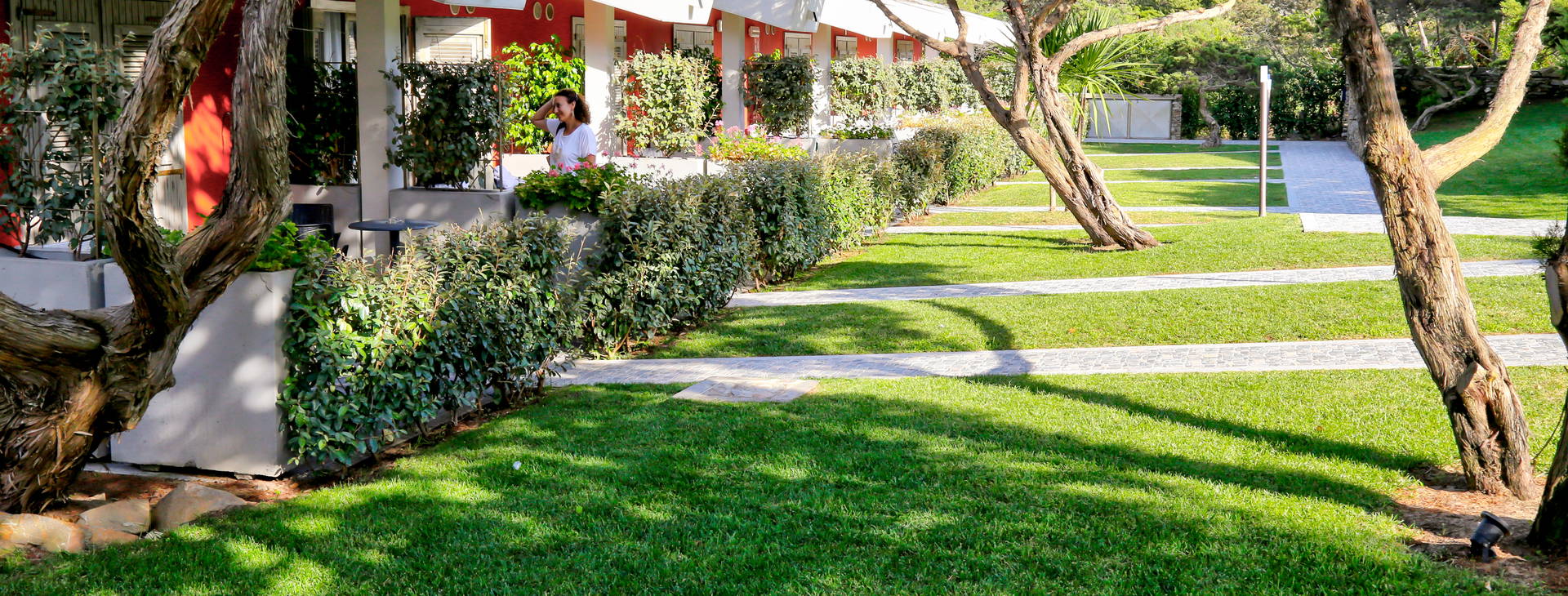.Hotel pozostáva z hlavnej budovy a niekoľkých menších budov, ktoré sú obklopené udržiavanou záhradou. K dispozícii je recepcia s nepretržitou prevádzkou, reštaurácia s výhľadom na more, ktorá ponúka jedlá formou bufetu s bohatou regionálnou, talianskou a medzinárodnou kuchyňou, a bar. Okrem toho bazén s bezplatnými ležadlami a slnečníkmi (kúpacie čiapky povinné). Osušky na kúpanie k dispozícii za zálohu vo výške cca 10 EUR/ks. (výmena zakaždým cca 3 EUR).