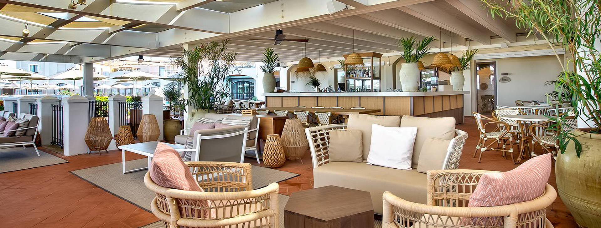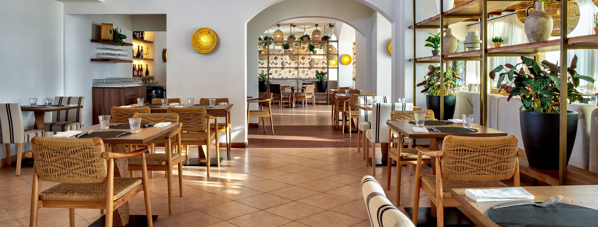 Recepcia, priestranná vstupná hala, 2 reštaurácie: hlavná reštaurácia Mediterra s medzinárodnou a miestnou kuchyňou a a'la carte reštaurácia Donna Floriana s talianskou kuchyňou (nutná rezervácia), 2 bary (vrátane jedného pri bazéne a jedného na pláži), 2 bazény, slnečná terasa s ležadlami a slnečníkmi.