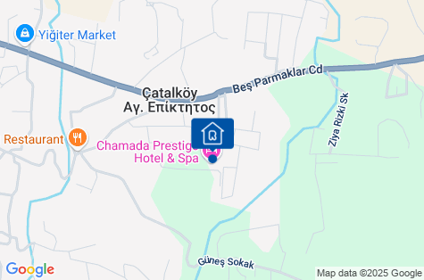 Hotel Chamada Prestige s celkovou rozlohou 35 000 m2 a výhľadom na mesto, more a hory, otvorený v roku 2022, sa nachádza v meste Kyrenia. Nachádza sa približne 7 km od centra mesta, približne 30 km od letiska Ercan v Nikózii a približne 75 km od letiska Larnaka.