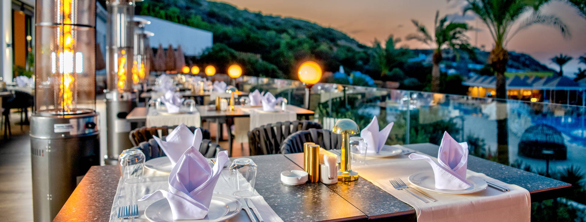 Recepcia s nepretržitou prevádzkou, minimarket, kasíno, požičovňa áut, kadernícke služby a práčovňa. Hotel má niekoľko reštaurácií: hlavnú reštauráciu Sunset (bufet, medzinárodná kuchyňa) a a'la carte: Tepe a Aqua, ako aj niekoľko barov: lobby bar, bar na pláži, bar pri bazéne a Aqua bar. Hoteloví hostia môžu využívať veľký vonkajší bazén obklopený slnečnou terasou, ako aj aquapark (5 šmykľaviek, pre dospelých a staršie deti). Pre najmenších hostí - detské brodítko. Ležadlá, slnečníky a osušky (vydávané na kartu) pri bazéne - zdarma.