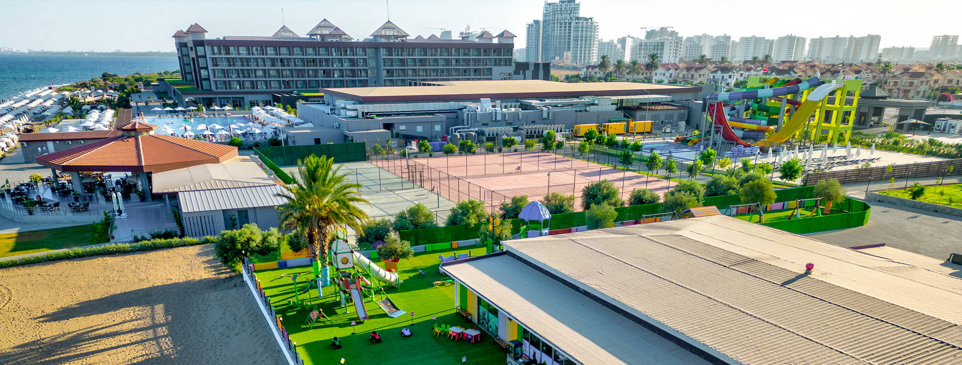 Registrácia 24 hodín denne, vonkajší bazén, vonkajší detský bazén, aquapark s 5 šmykľavkami, wellness centrum (vnútorný bazén, detský bazén, posilňovňa, sauna, relaxačná zóna, parný kúpeľ), obchod, futbalové a basketbalové ihrisko, tenisový kurt, ihrisko na plážový volejbal. Za poplatok: požičovňa áut, práčovňa, kaderníctvo, masáže.