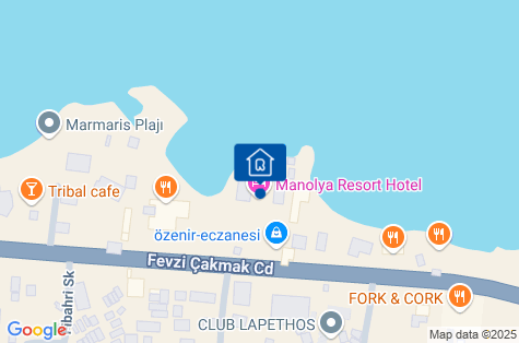 Malý hotel sa nachádza priamo na nábreží v malej dedinke Lapta. Je vzdialený len 10 km od najznámejšieho letoviska severnej časti Cypru, Kerynie. Vo vzdialenosti približne 500 m od hotela sa nachádza autobusová zastávka, odkiaľ sa ľahko dostanete do Kerynie (autobusy premávajú každých niekoľko minút; v závislosti od mesiaca). Najbližšie obchody a reštaurácie sú vzdialené asi 100 m od hotela. Letisko Ercan je vzdialené približne 55 km.