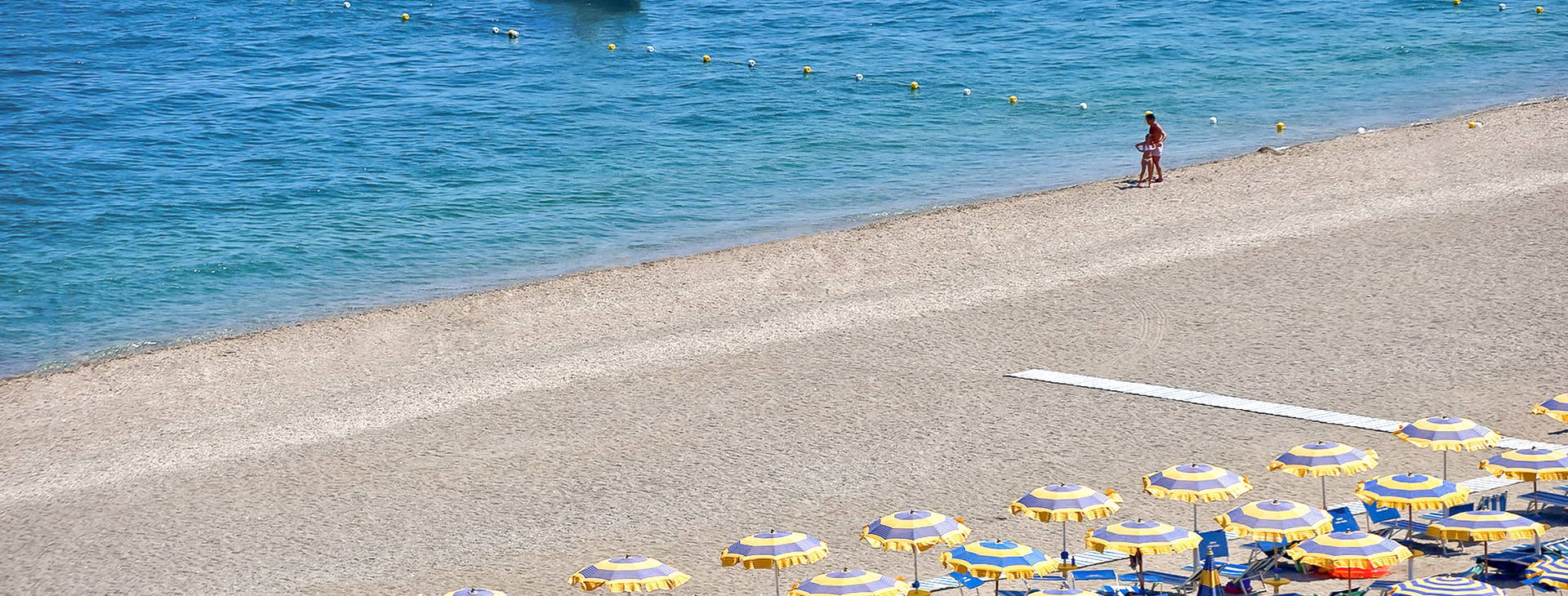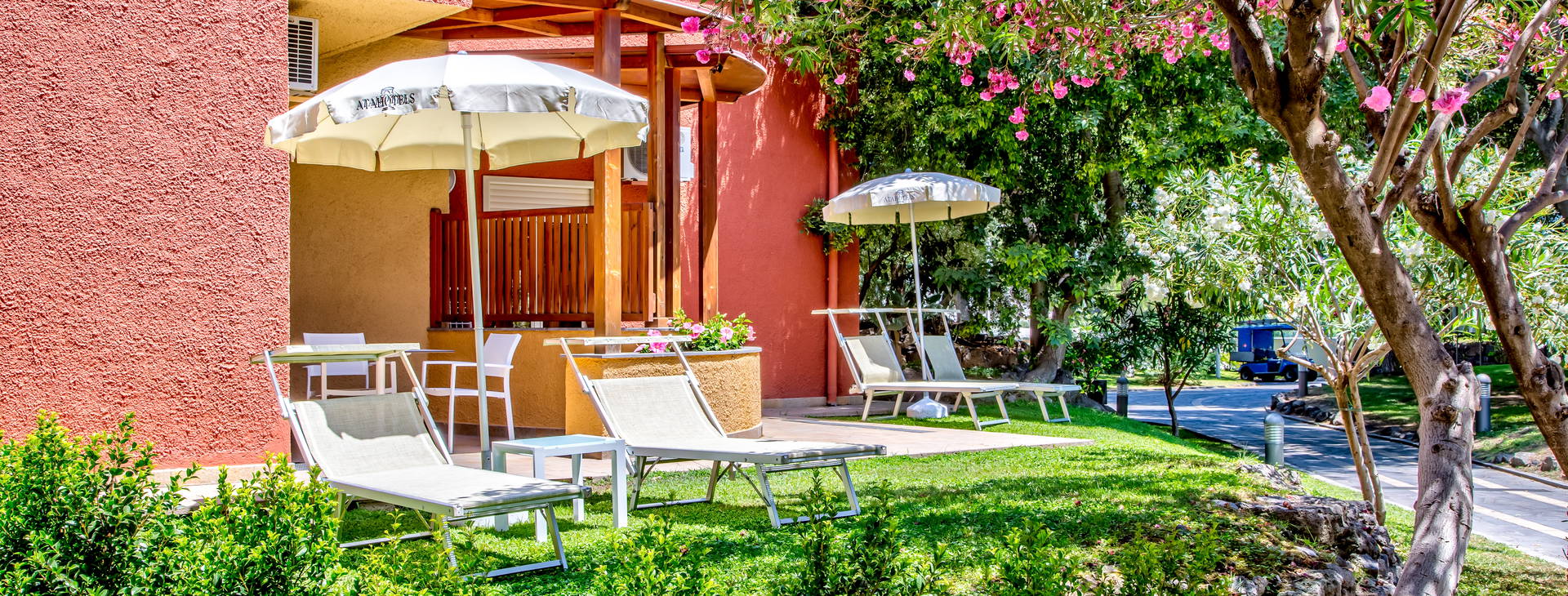 .Budova sa nachádza približne 50 m od širokej súkromnej pláže (hrubý piesok s drobnými kamienkami, odporúčame ochrannú obuv). Spoplatnený plážový servis (cca 7-15 EUR/deň/komplet - v závislosti od sezóny a radu) a plážové uteráky (cca 1 EUR/osoba/deň), pri variante All Inclusive uteráky a plážový servis od 3. radu zdarma.
