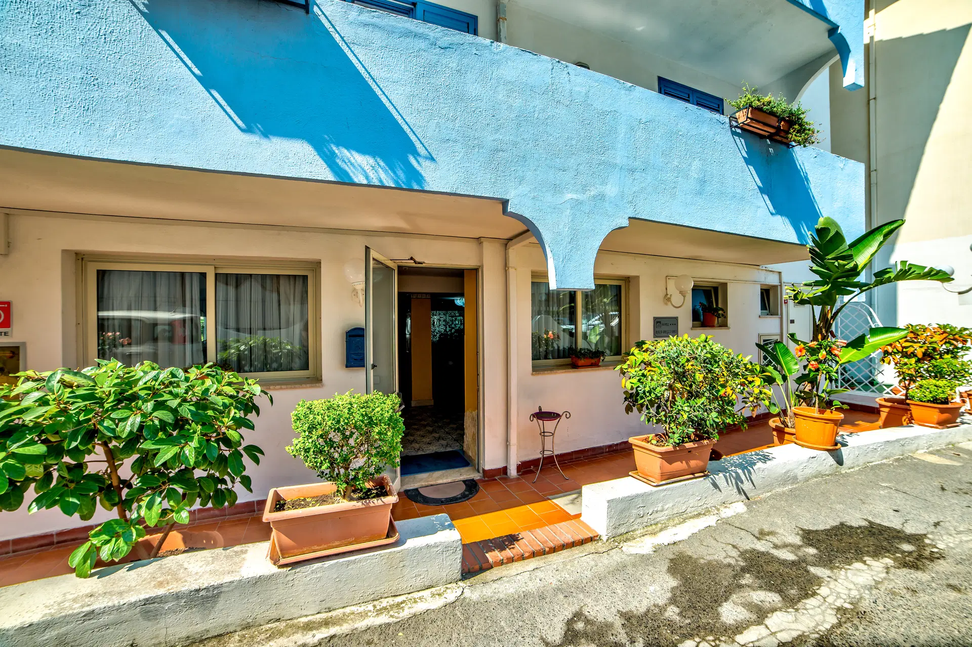 .Budova sa nachádza na súkromnej pláži (tmavý piesok s drobnými kamienkami, odporúčame ochrannú obuv). Platený plážový servis (cca 10 EUR/deň/plný - v závislosti od sezóny)