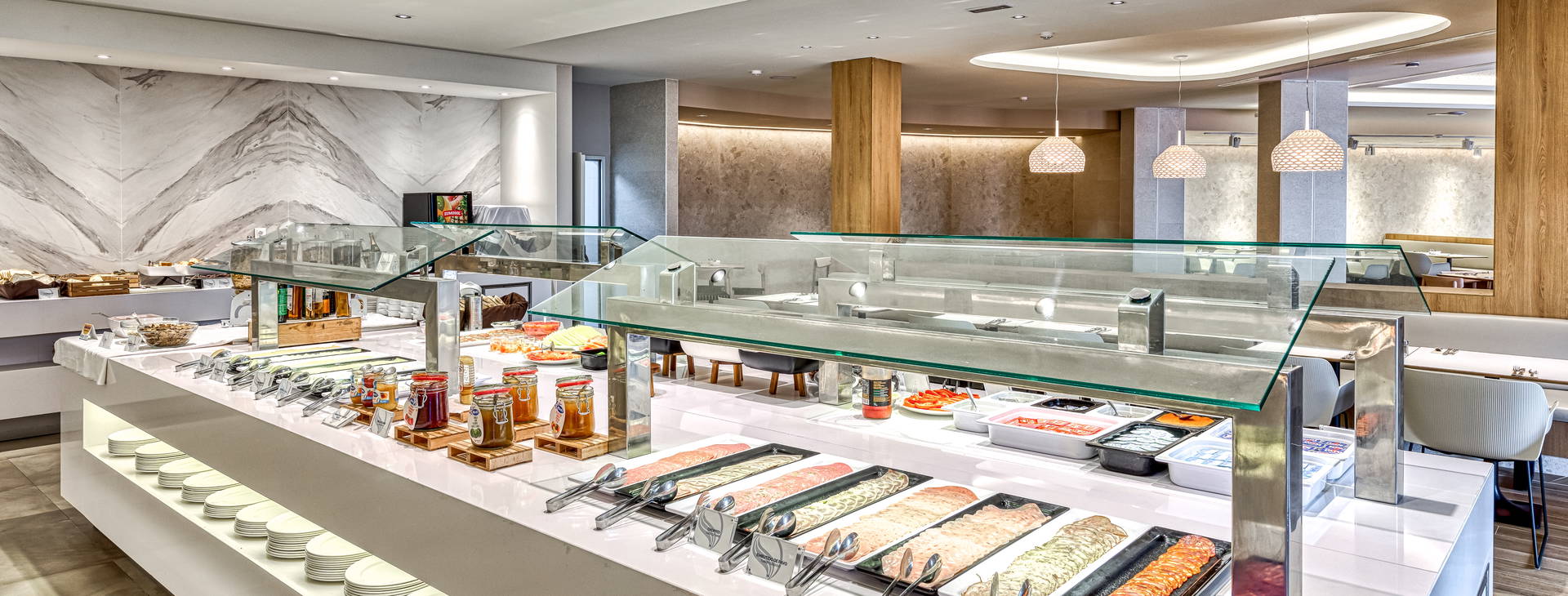 Raňajky sa podávajú formou bohatého bufetu. Je možné si priplatiť za večeru, 3 jedlá denne alebo Premium All Inclusive. Premium All Inclusive: raňajky, obedy a večere formou bufetu, miestne alkoholické a nealkoholické nápoje (od otvorenia baru do 01:00 v júli a auguste, do 24:00 v ostatných mesiacoch), občerstvenie medzi jedlami v čase určenom hotelom.
