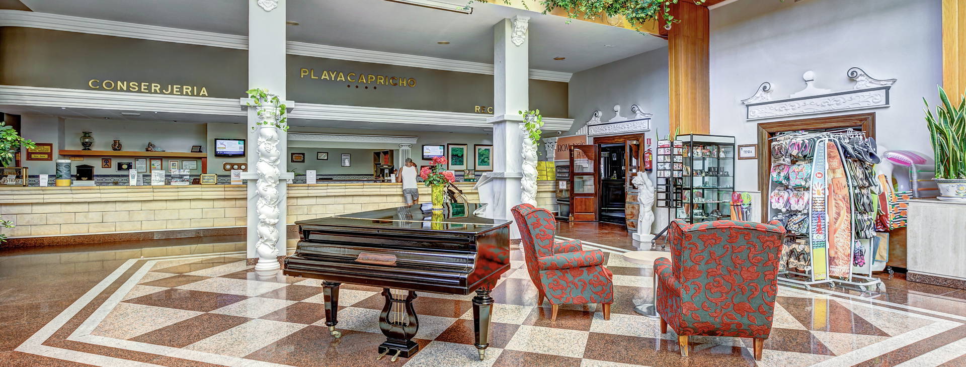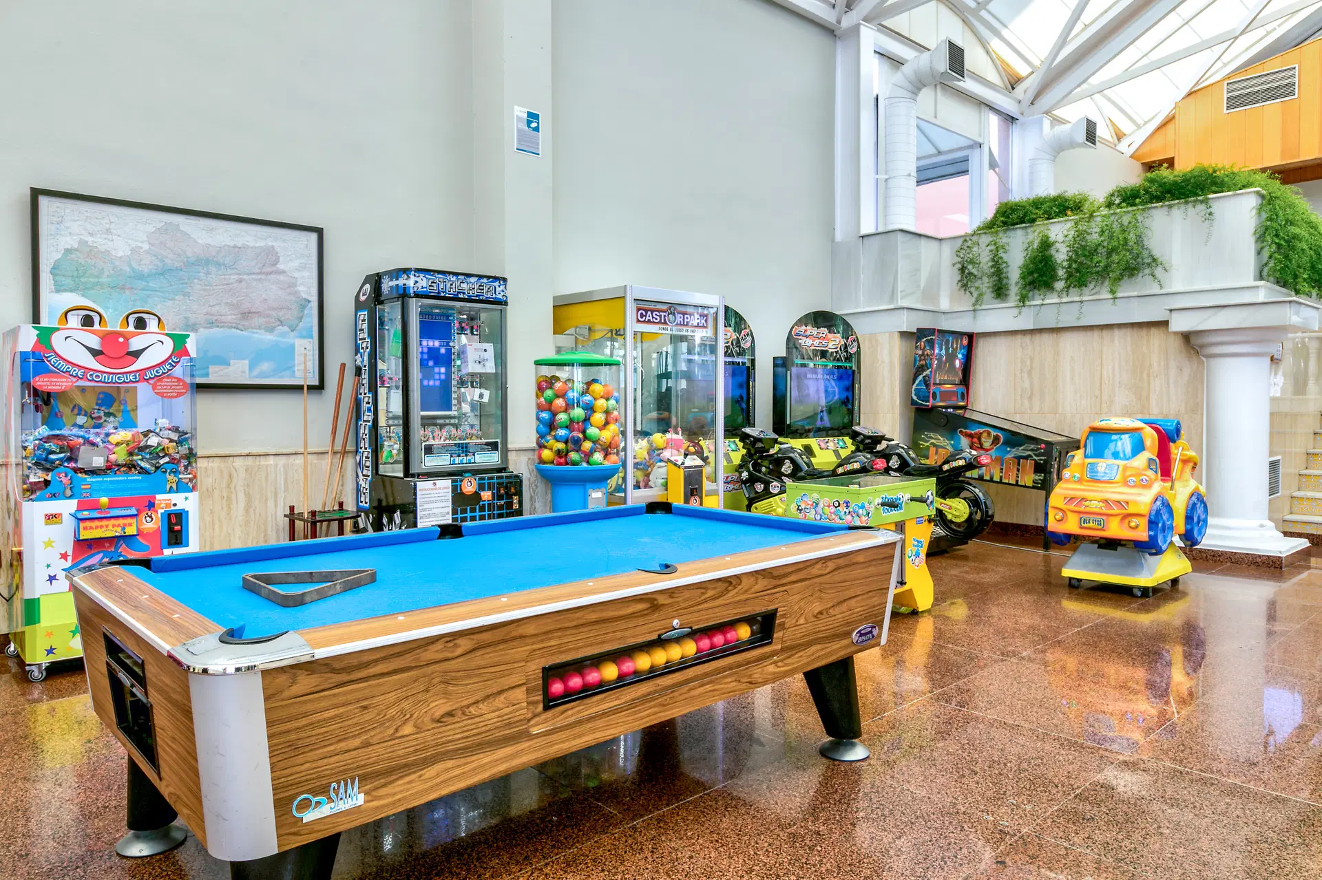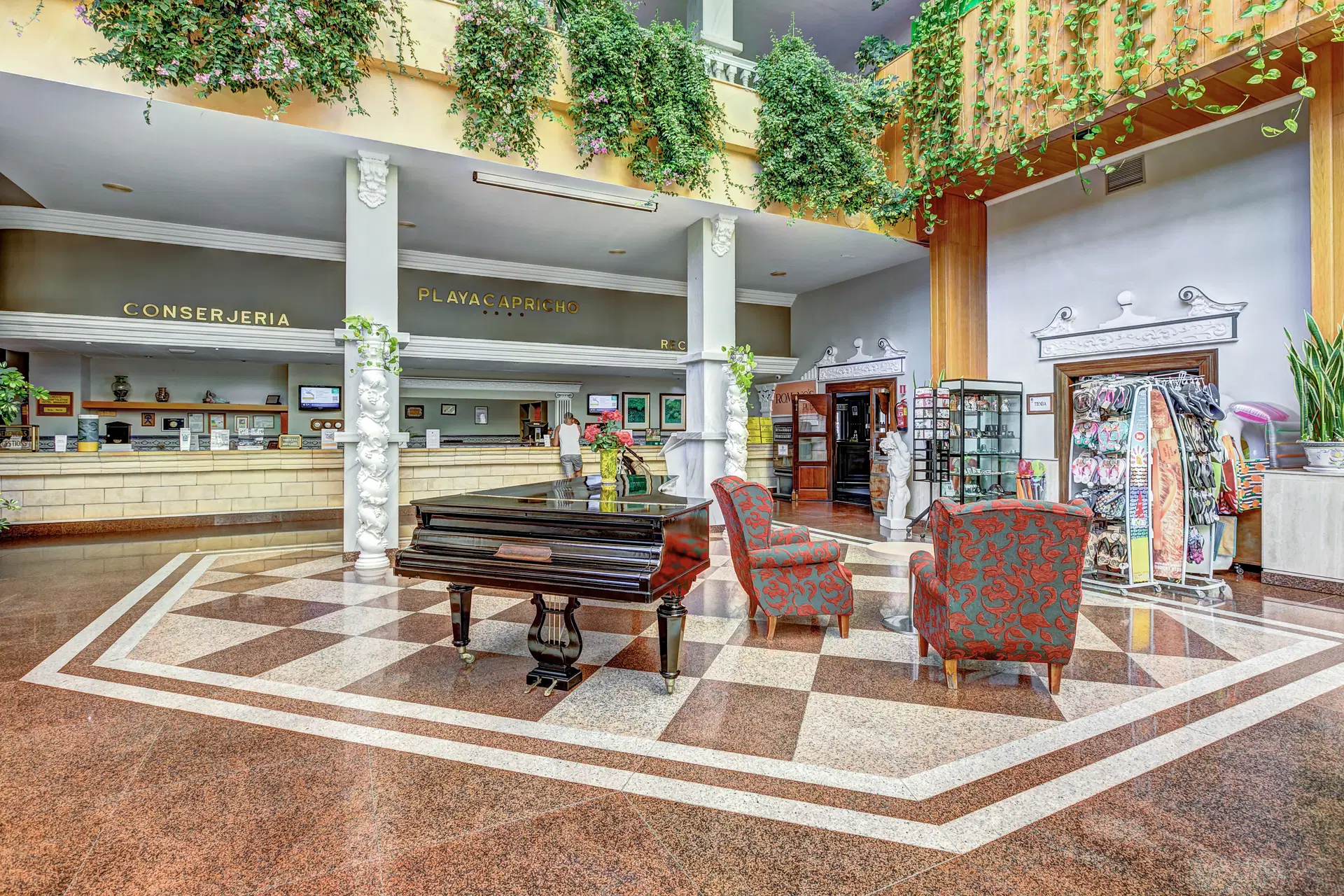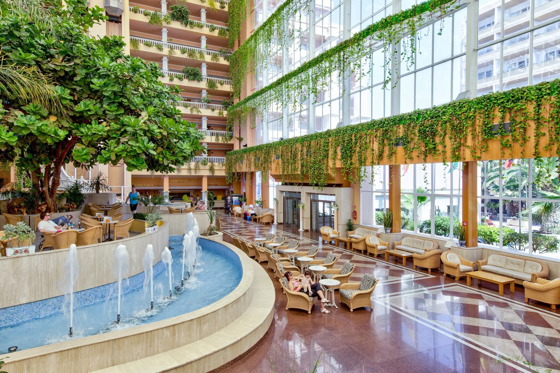 Recepcia, priestranná vstupná hala, výťahy, hlavná reštaurácia, bary, slnečná terasa v palmovej záhrade, samostatná slnečná terasa pre nudistov, veľký bazén so šmykľavkami, vírivka, detské ihrisko, miniklub, obchod so suvenírmi, požičovňa áut, parkovisko. Hotel poskytuje uteráky k bazénu (záloha cca 10 €, výmena cca 1 €),