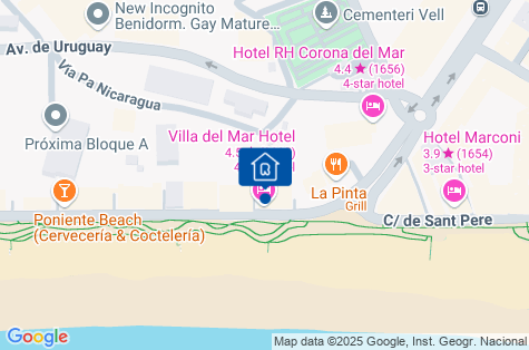 Hotel sa nachádza v Benidorme, najobľúbenejšom letovisku na pobreží Costa Blanca. V blízkosti hotela sa nachádzajú obchody, bary, reštaurácie. Do centra Benidormu (v blízkosti vyhliadky Balcó del Mediterrani) je to približne 800 m. Letisko Alicante cca 50 km.
