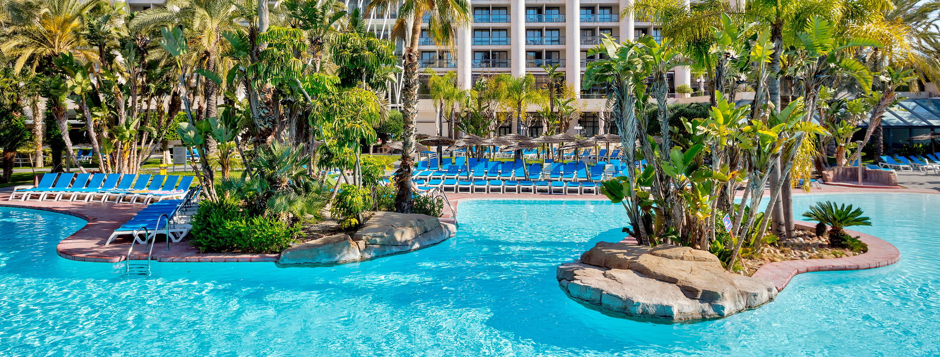 Veľkou výhodou hotela je jeho plne moderný interiér so zelenými prvkami, v ktorom sa naši hostia môžu cítiť naozaj príjemne. Za zmienku stojí aj atraktívny dizajn bazéna plného paliem a stredomorskej vegetácie. Spolu s vybavením pre deti je tento hotel ideálny na rodinnú dovolenku.