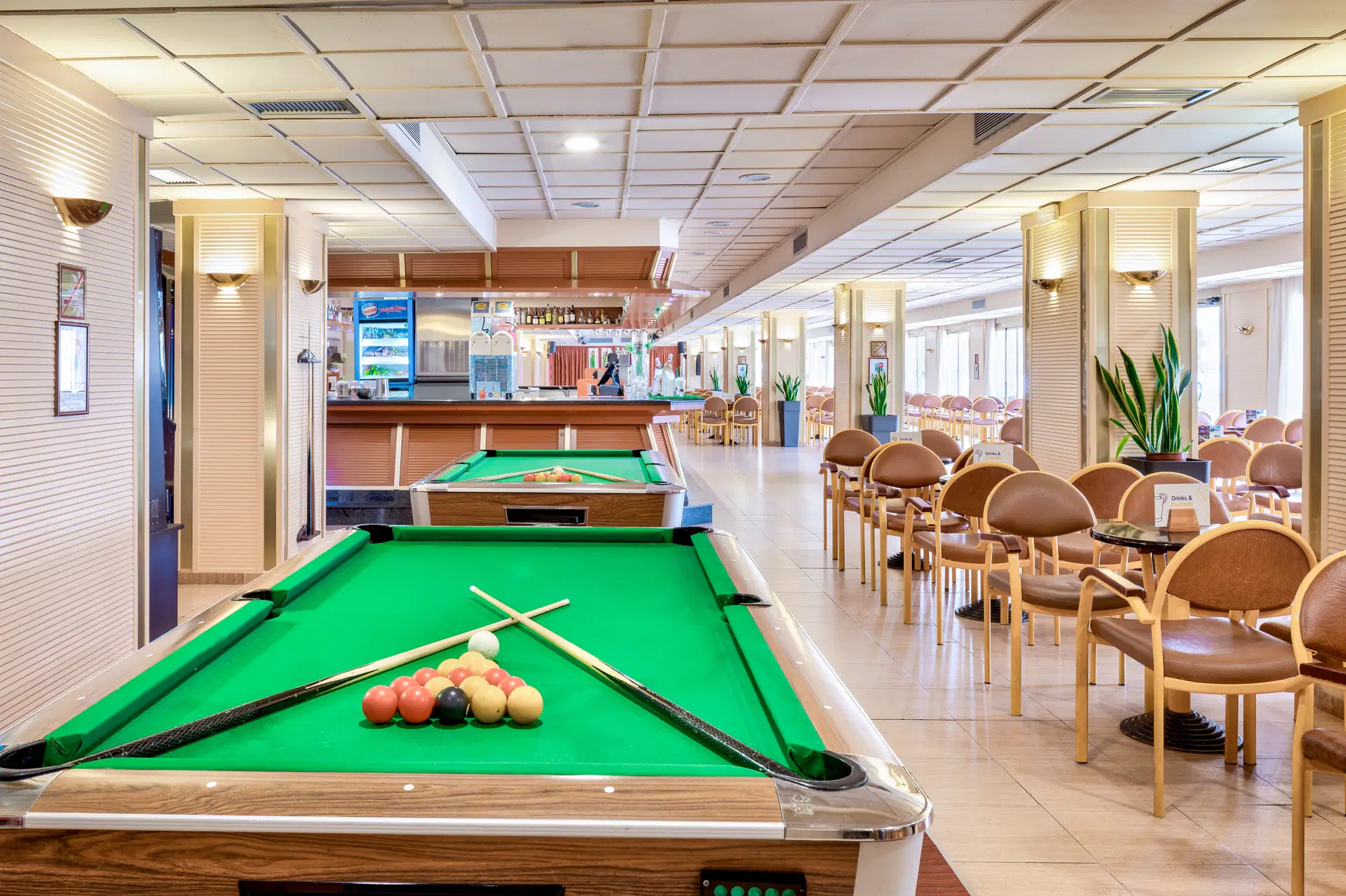 .Recepcia, vstupná hala s barom, reštaurácia, snack bar, slnečná terasa s bazénom a detským bazénom (sladká voda v bazénoch), malý krytý vyhrievaný bazén, slnečná terasa pri bazéne a na streche, miniklub, obchod so suvenírmi, internetové stanice za príplatok. Hotel neposkytuje plážové osušky. Na pláži sú ležadlá a slnečníky za poplatok cca 6-7 Eur/osoba.