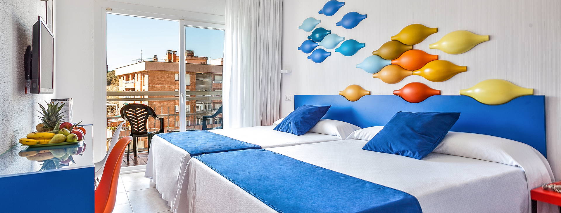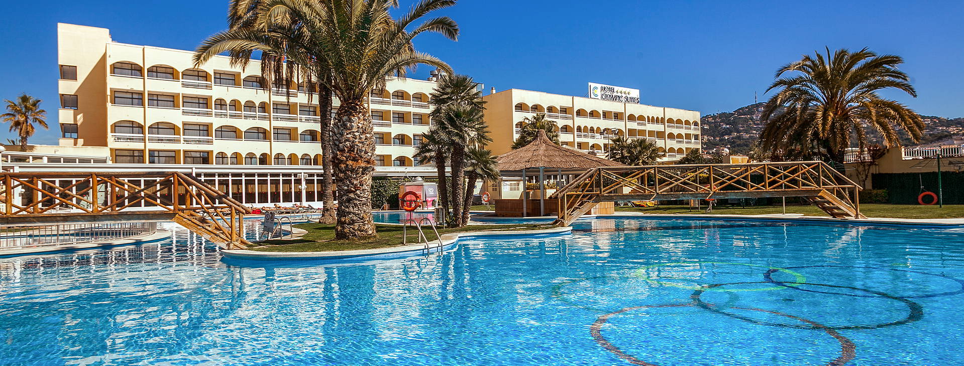 Olympijský rezort Evenia, ktorý je súčasťou komplexu 4 hotelov, sa nachádza na okraji letoviska, v pokojnej časti Lloret de Mar. K piesočnatej a kamienkovej zálivovej pláži je to približne 900 m, do centra Lloretu (široký výber obchodov, reštaurácií, barov a pre tých, ktorí radi chodia v noci von, je tu množstvo diskoték a klubov)