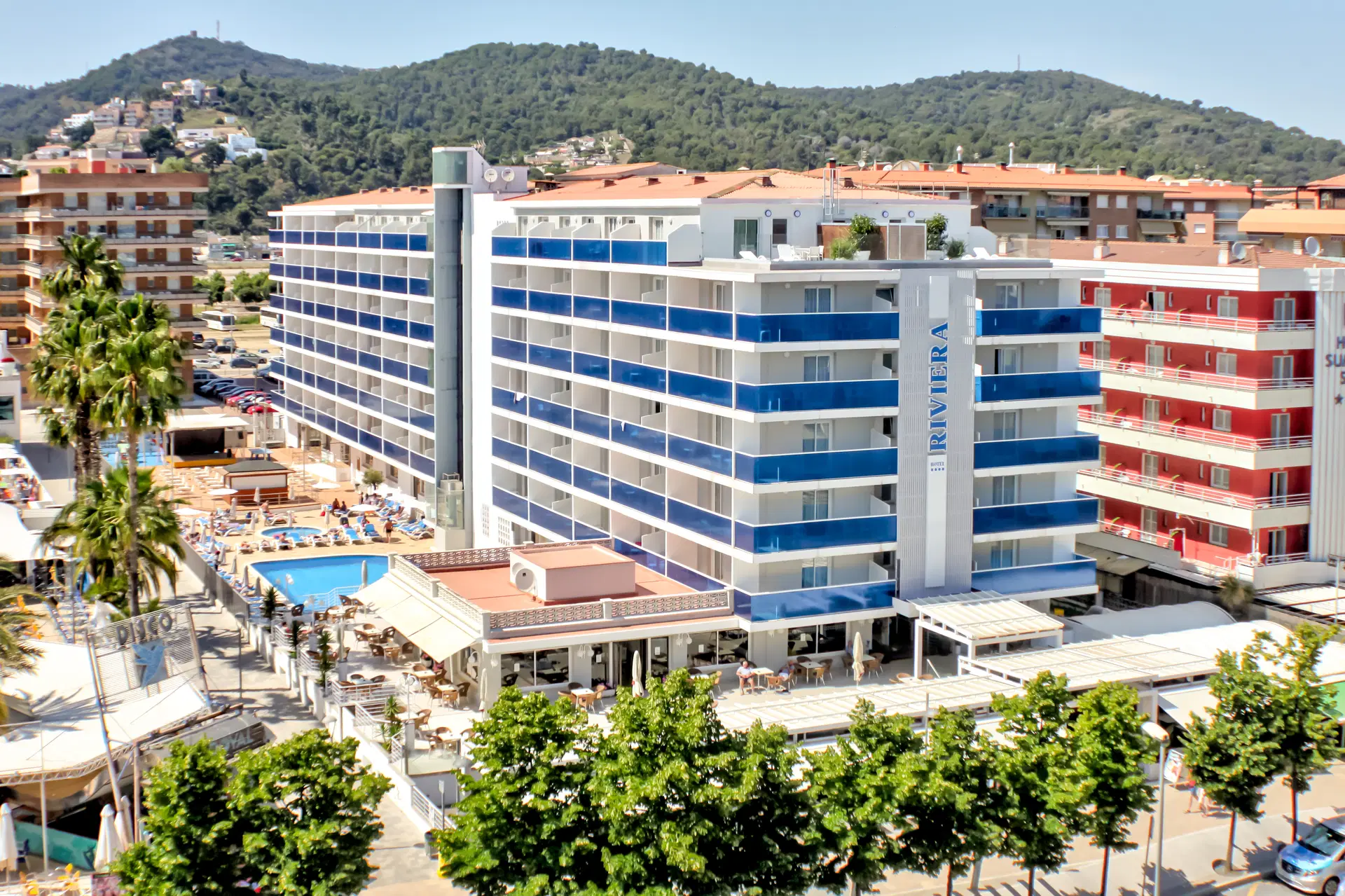 Hotel sa nachádza na hlavnej promenáde s množstvom barov, reštaurácií, kaviarní a obchodov so suvenírmi. Vlaková zastávka spájajúca pobrežie s Barcelonou sa nachádza približne 500 m od hotela. Na letisko Girona cca 30 km, na letisko Barcelona cca 80 km.