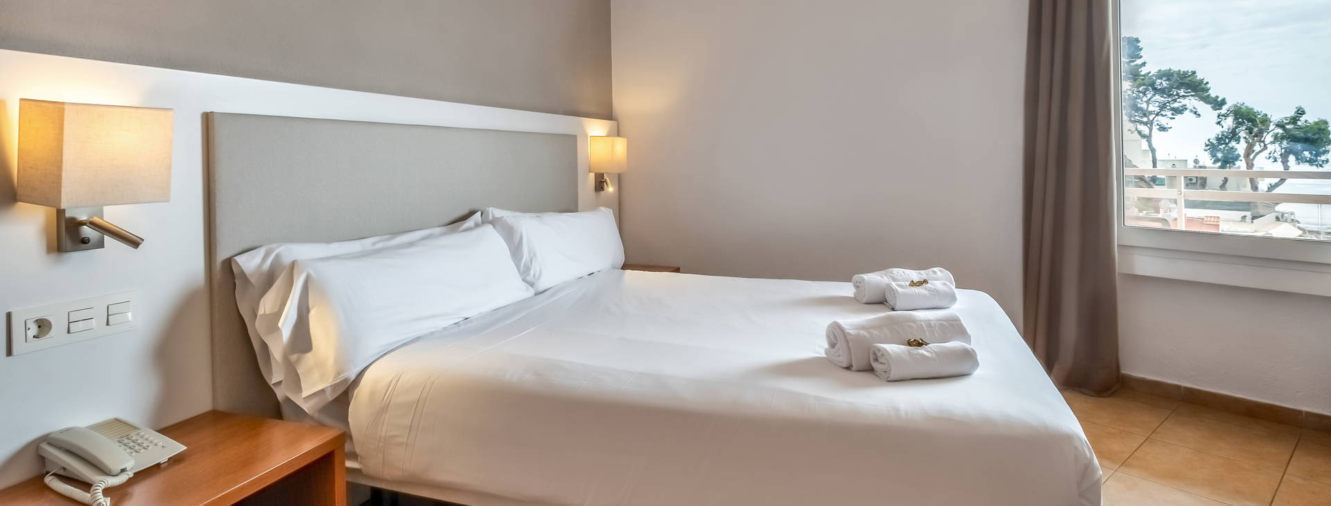 .Hotel sa nachádza približne 100 m od širokej piesočnato-kamienkovej pláže (hlavná pláž Lloretu, pláž v zálive). Hotel je od pláže oddelený promenádou (doprava povolená). Ležadlá a slnečníky na pláži za poplatok (cca 6 EUR/deň).