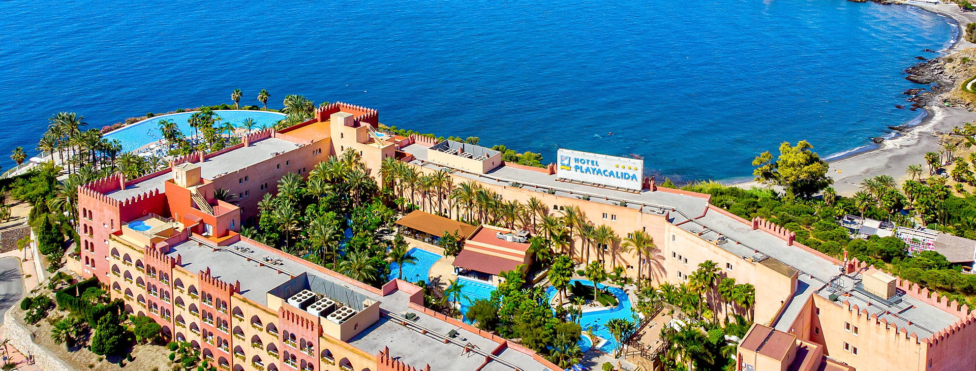 Hotel v arabskom štýle sa nachádza na kopci medzi 2 malými plážami v zálive (zmes tmavého piesku, štrku a kamienkov), väčšia pláž je vzdialená asi 400 m - tu sa nachádzajú typické chiringuito (plážové bary ponúkajúce aj ležadlá a slnečníky, ktoré nepatria hotelu) a tu začína pobrežná promenáda a cyklistická cesta dlhá takmer 5 km. Asi 2,5 km od hotela sa nachádza malý aquapark. Centrum mesta Almunecar je vzdialené asi 5 km - obchody, bary a reštaurácie. Letisko Malaga je vzdialené približne 80 km.