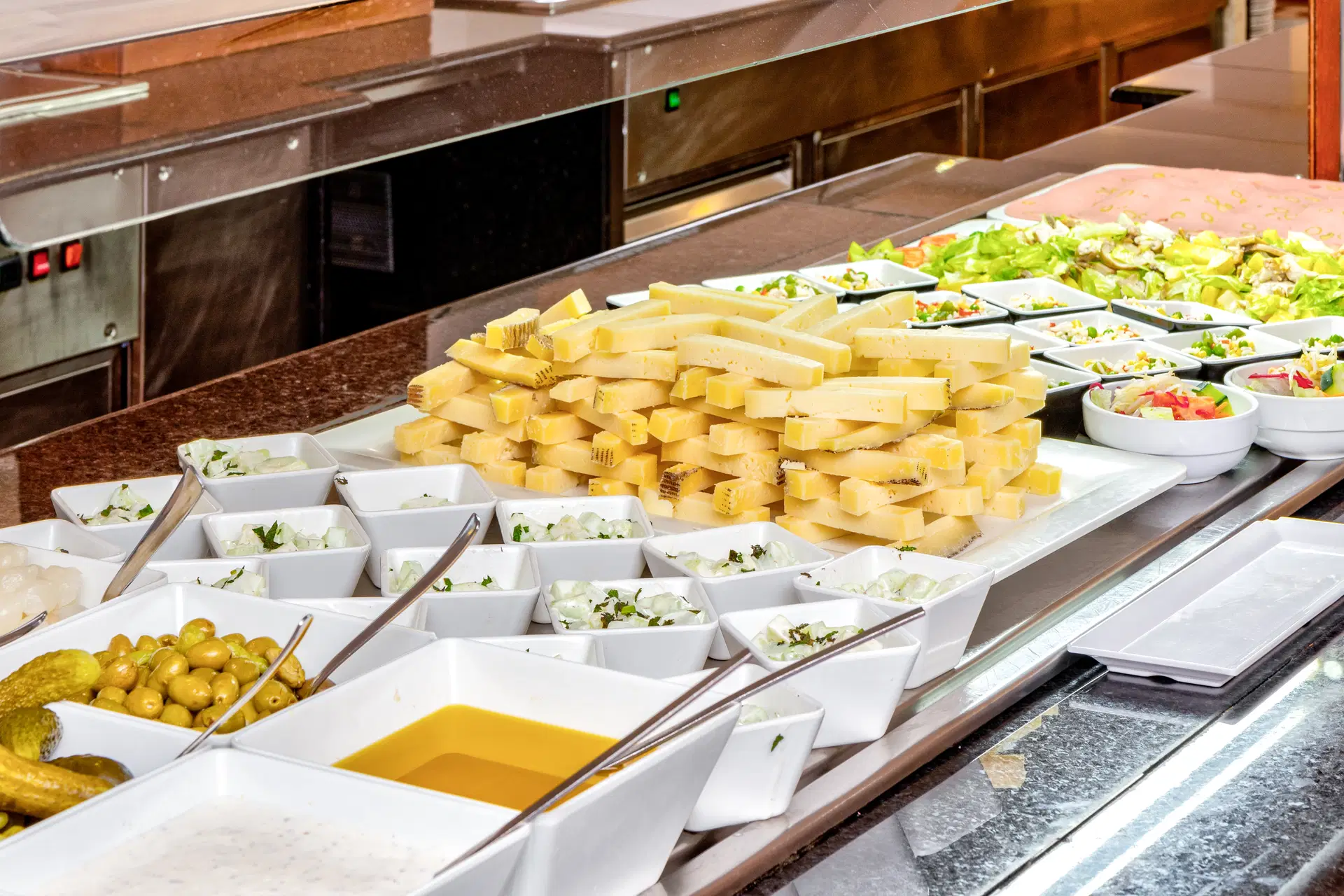All Inclusive: raňajky (08:00-10:00), neskorý obed (10:30-11:30), obed (13:00-15:00) a večera (19:30-21:30). Voda a víno k obedu a večeri v cene. Medzi jedlami studené a teplé občerstvenie, káva, čaj, dezert, zmrzlina. Miestne nealkoholické a alkoholické nápoje podávané v bare (10:30-22:30). Vyžaduje sa náramok All Inclusive.
