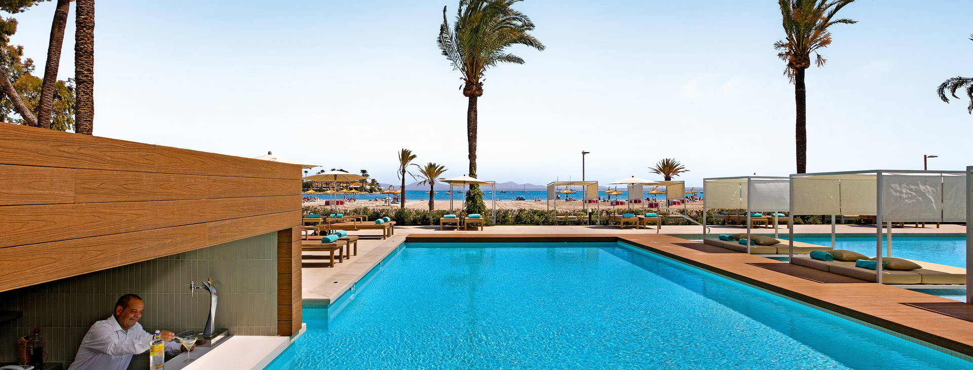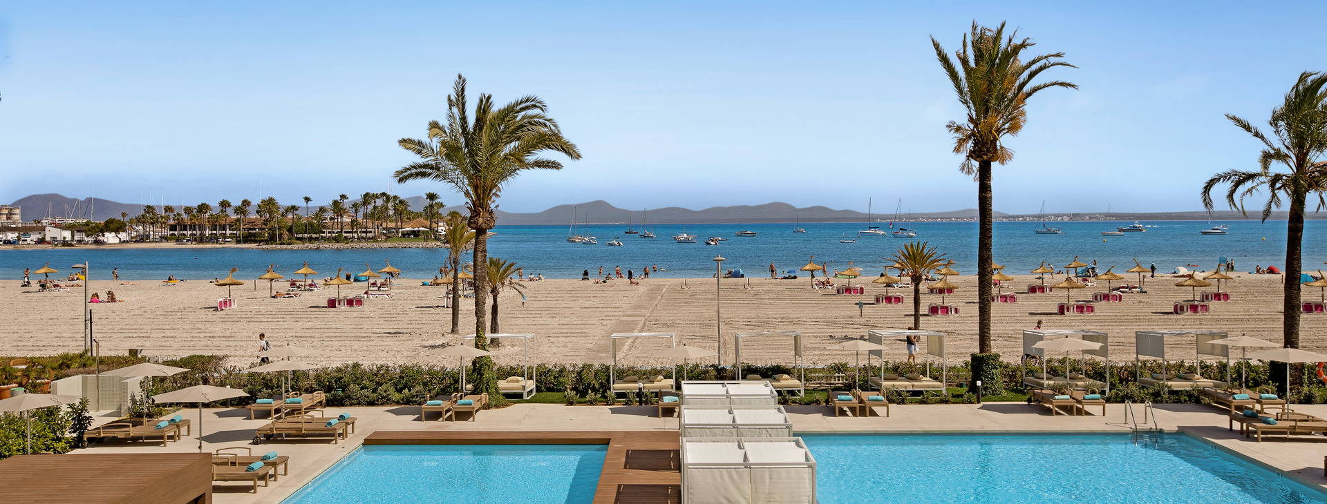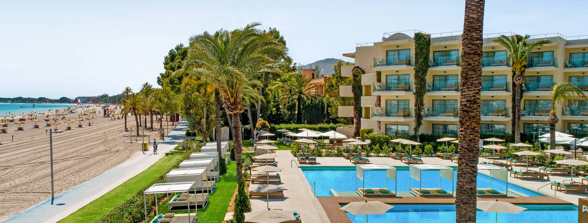 Hotel sa nachádza priamo na verejnej, širokej a piesočnatej pláži Platja de Muro.