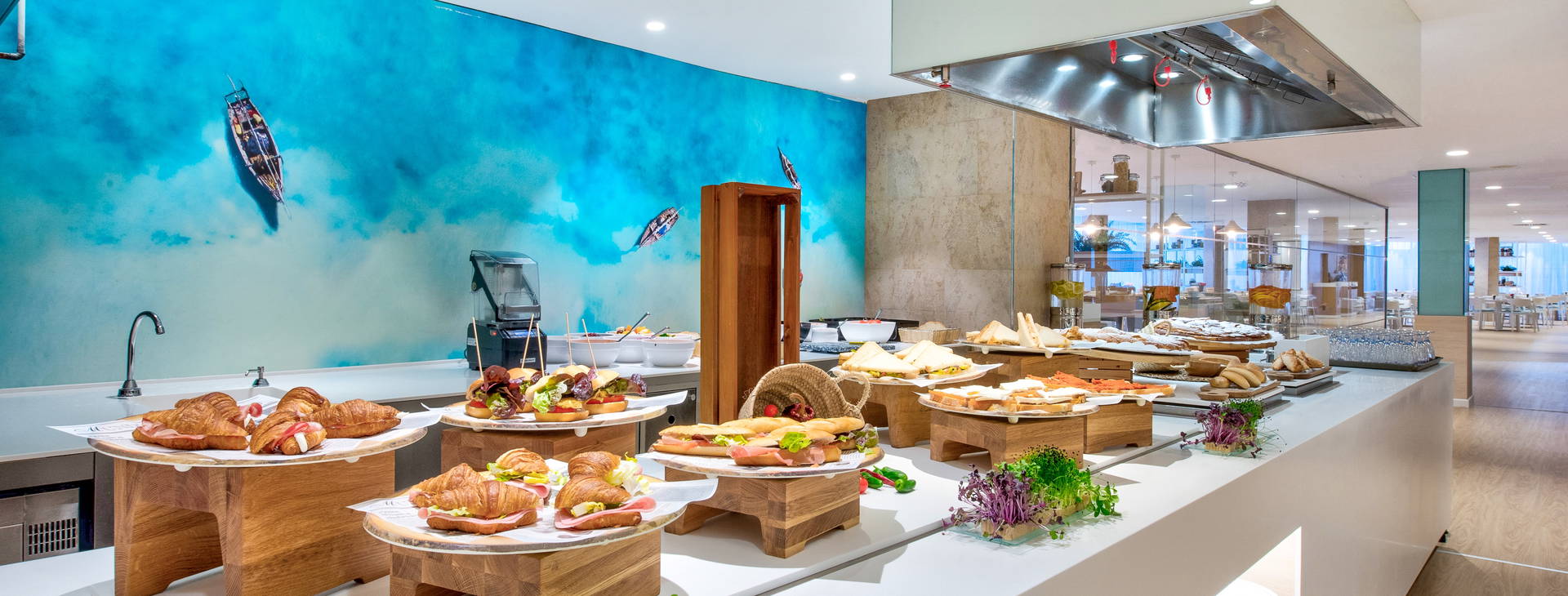 .Raňajky a večere: raňajky (7:30 - 10:30), večera (18:30 - 21:30) podávané formou bohatého bufetu v hlavnej reštaurácii "Tramuntana".
