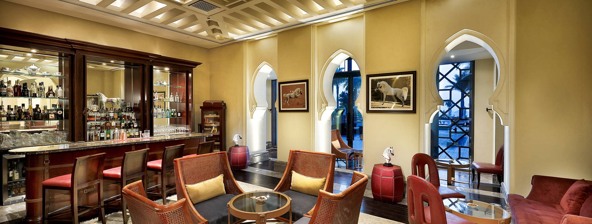 24-hodinová recepcia a priestranná vstupná hala, 5 reštaurácií vrátane tematických reštaurácií, ktoré ponúkajú morské plody, grilované jedlá, stredomorské a libanonské špeciality; 2 bary: Bab Al Bahr na pláži a Al Shorfa vo vstupnej hale, konferenčné miestnosti, bankomat, obchod so suvenírmi, práčovňa, kaderníctvo/kozmetický salón, turistické informácie, prenájom áut. Okrem toho má hotel 2 vonkajšie bazény a detské brodítko.