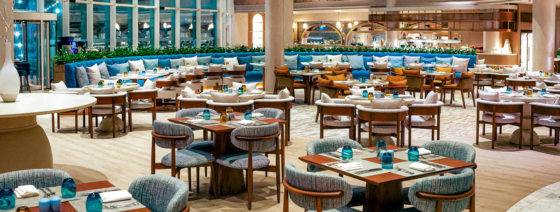Recepcia, vstupná hala, hlavná reštaurácia Palm Garden Restaurant & Terrace (06:30-11:30, 12:30-15:30, 19:00-22:30) a reštaurácie a'la Carte: Ciao Ristorante s talianskou kuchyňou (18:00-23:30), Peacock Restaurant s čínskou kuchyňou (denne 18:00-23:30, piatok a sobota 12:30-15:00), reštaurácia Al Hadiqa & Shisha Tent s arabskou kuchyňou (12:30-03:00) a bary: Azure pri bazéne (denne 09:00-18:00), Bliss Lounge pri pláži (12:30-03:00), Moods Bar (15:00-03:00). Po 20:00 Bliss Lounge, reštaurácia Al. Hadiqa a Moods Bar len pre hostí nad 21 rokov. K dispozícii je aj bazén a detské brodítko (ležadlá, osušky a slnečníky pri bazéne sú k dispozícii zdarma), zmrzlinová búda pri bazéne (za poplatok); pirátsky klub pre deti, 24-hodinová posilňovňa v areáli hotela (pre mužov a ženy) a za príplatok kozmetické služby a starostlivosť o pleť v kúpeľnom centre.