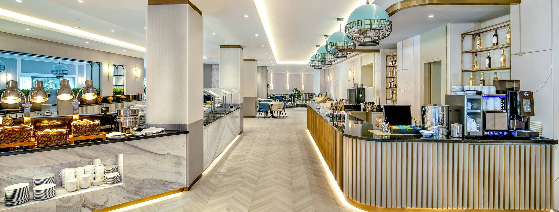 .Raňajky (06:00-10:30 v bufete v hlavnej reštaurácii. Možný príplatok za polpenziu (HB) alebo plnú penziu: raňajky, obed a večera (FB) - stravovanie v hlavnej reštaurácii formou bufetu. Nápoje počas obeda a večere sú za príplatok. Za príplatok balíček All Inclusive, ktorý zahŕňa 3 jedlá, ako aj občerstvenie a alkoholické a nealkoholické nápoje (10:00-22:00).