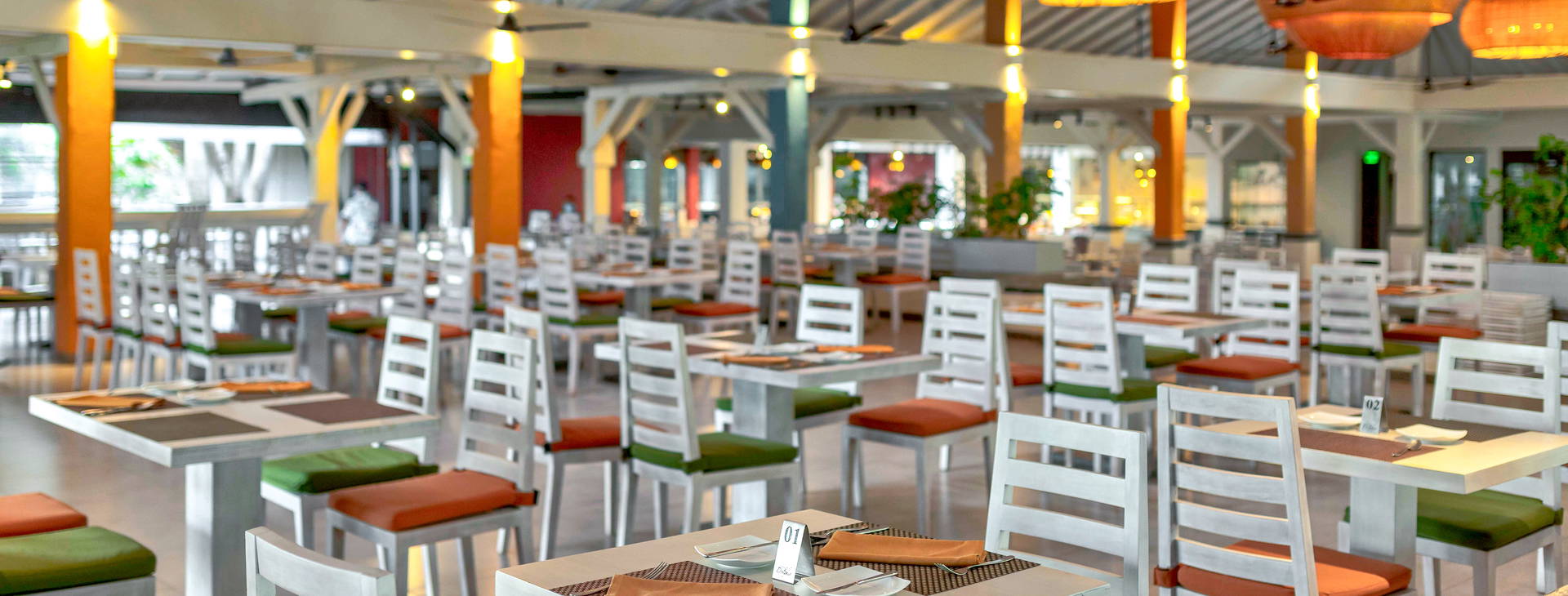All Inclusive: raňajky formou bufetu, obedy a večere v hlavnej reštaurácii, občerstvenie počas dňa v baroch (10:30-17:30), popoludňajší čaj, káva a čaj (16:30-17:30), tematické večere, nočné občerstvenie (23:00-24:00). Miestne nealkoholické nápoje, alkoholické nápoje a koktaily na báze miestnych destilátov k dispozícii v baroch (10:00-24:00). Za príplatok: a'la carte reštaurácie a jedlá, šampanské, víno, čerstvo vylisované šťavy.