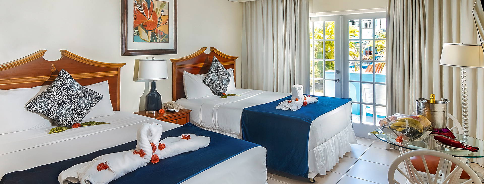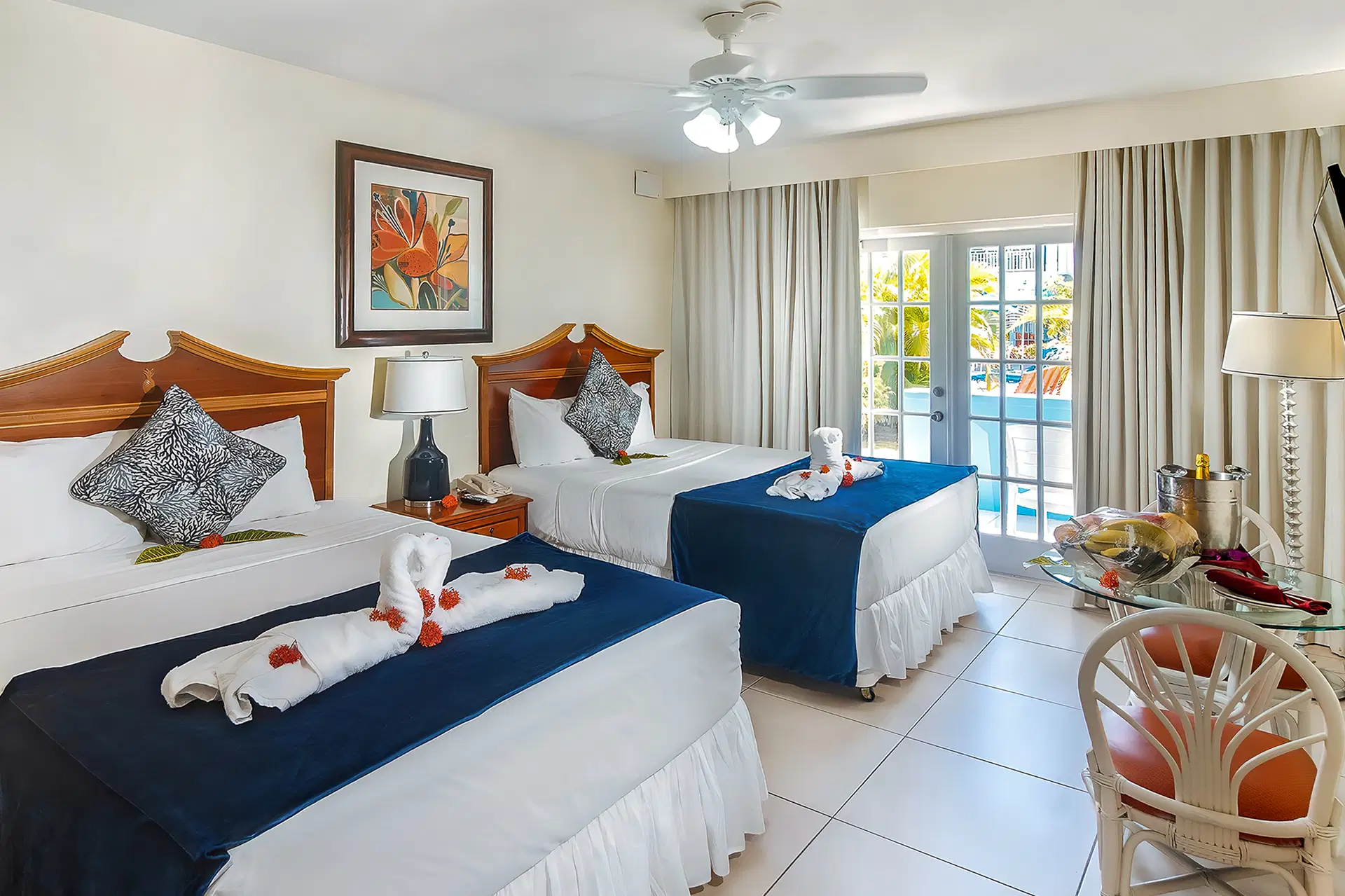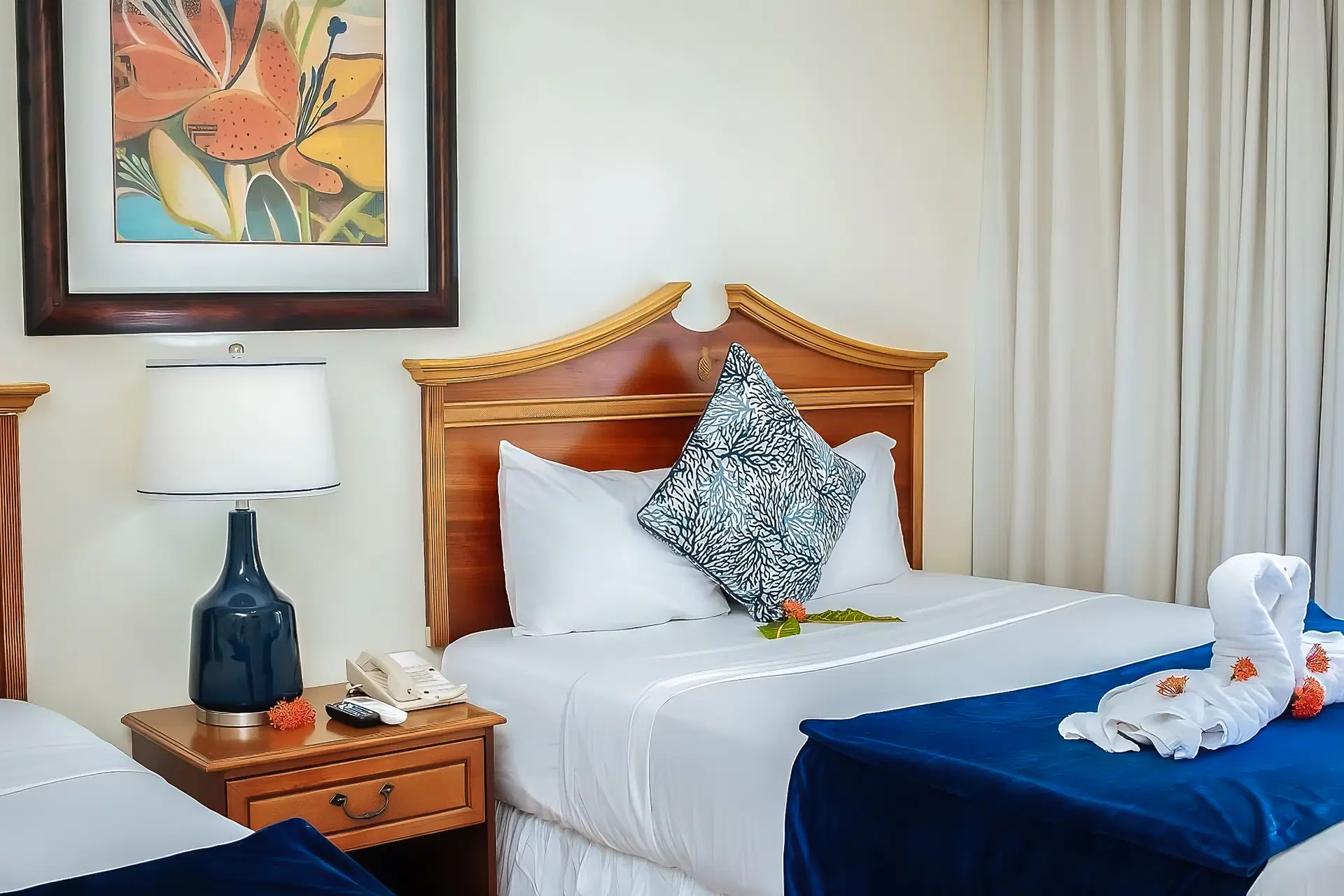 Recepcia s lobby otvorená 24 hodín denne, 7 dní v týždni, bazén, reštaurácia. Neobmedzený bezplatný vstup do vodného parku Splash Island a nemotorizované vodné športy na pláži Reduit, tiež zdarma. Bezplatná hotelová kyvadlová doprava do ostatných hotelov siete Bay Gardens. Okrem toho má sesterský hotel Bay Gardens Beach Resort & Spa detský klub Coral Kids Club, ktorý je otvorený pre deti od 4 do 12 rokov bez obmedzenia. Za príplatok sú k dispozícii služby wellness centra a služby prania a žehlenia bielizne.