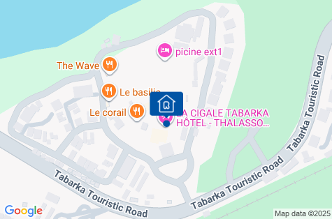 La Cigale Tabarka Hotel Spa & Golf sa nachádza uprostred bohatej zelene, neďaleko mesta Tabarka (asi 7 km), kde nájdete ulice s trhmi, miestnymi výrobkami a kaviarňami a barmi. Vzdialenosť od letiska je približne 13 km.
