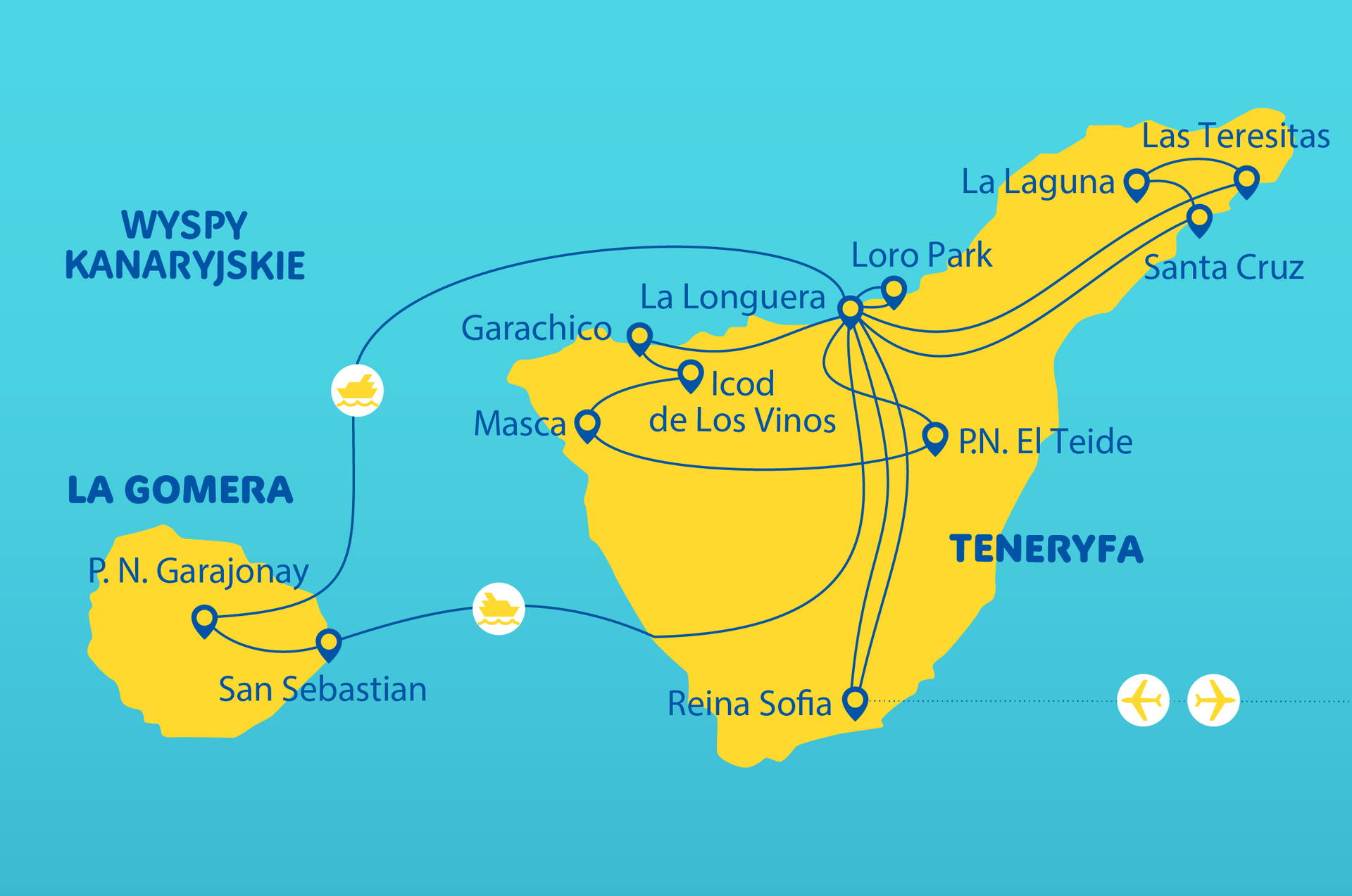Dvě hlavní města Tenerife - Santa Cruz a La Laguna - majestátní sopka Teide - nejkrásnější vesnice - Masca - kouzelný vavřínový les na ostrově La Gomera - hlavní město ostrova La Gomera - San Sebastian - slavná botanická a zoologická zahrada Loro Parque - možnost prodloužení pobytu na Tenerife!