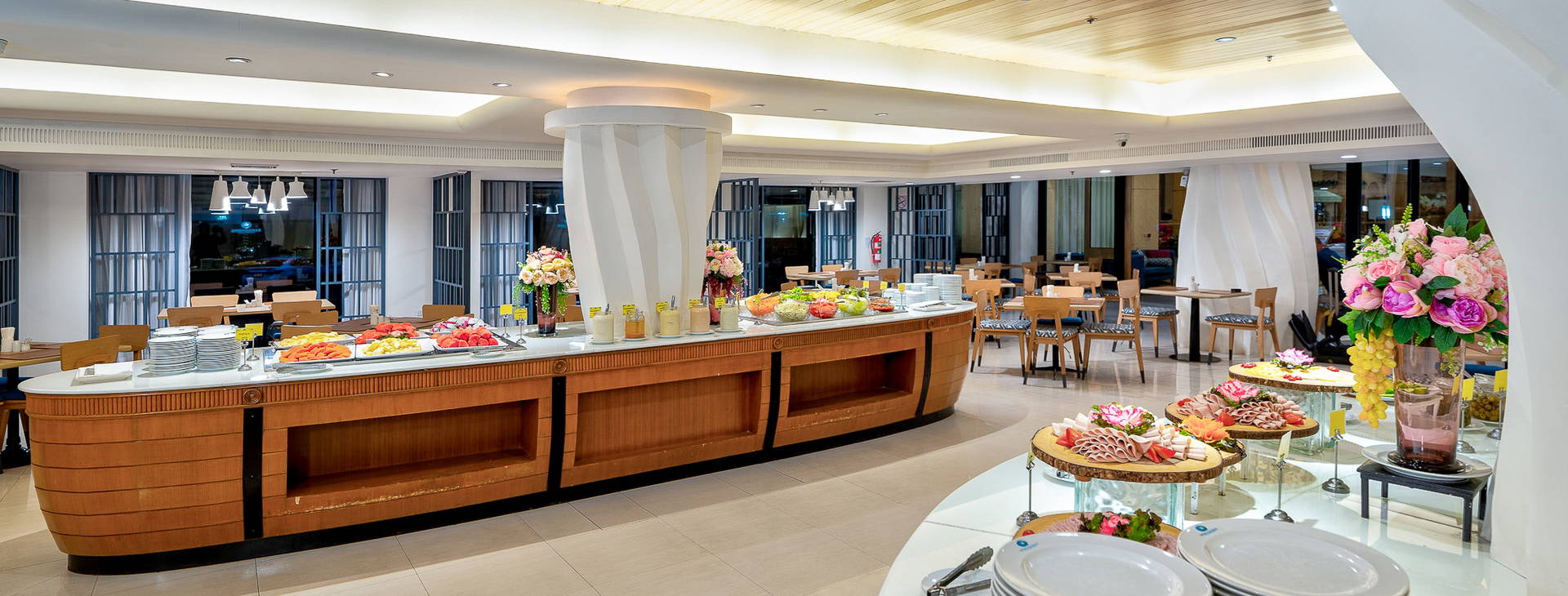 V hoteli je niekoľko reštaurácií a bar: reštaurácia Coral Reef, otvorená denne a podávajú sa v nej ázijské a západné raňajky a večere formou bufetu; ďalšia reštaurácia Palm Terrace, ktorá sa nachádza vonku a podávajú sa v nej prevažne grilované morské plody, je otvorená denne od 10:00 do 23:00; reštaurácia Lighthouse, ktorá sa nachádza na 16. poschodí krídla Jomtien, ponúka krásny výhľad a medzinárodné jedlá formou bufetu, otvorená denne od 18:00 do 21:30. K dispozícii je aj Sunset Lobby Bar, kde sa podávajú nápoje a iné nápoje, otvorený 24 hodín denne.