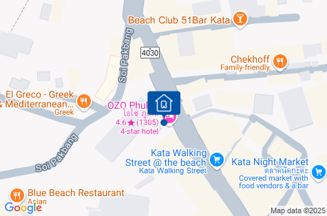 OZO PHUKET sa nachádza len pár krokov od pláže Kata, jednej z najkrajších pláží na ostrove. V okolí sa nachádzajú zaujímavé miesta, ako napríklad minigolf Dino Park (cca 450 m), chrám Veľkého Budhu (cca 3,3 km), slonia džungľa (cca 15,7 km), vodný park Andamanda (cca 17,1 km). Počas pobytu v Phukete si nenechajte ujsť nočný trh Kata (220 m) a staré mesto (cca 15 km). Hotel má tiež výhodnú polohu vzhľadom na medzinárodné letisko Phuket, ktoré je vzdialené približne 50 km. Do rezortu sa dostanete letiskovou kyvadlovou dopravou (za príplatok) a prenajatým súkromným autom.