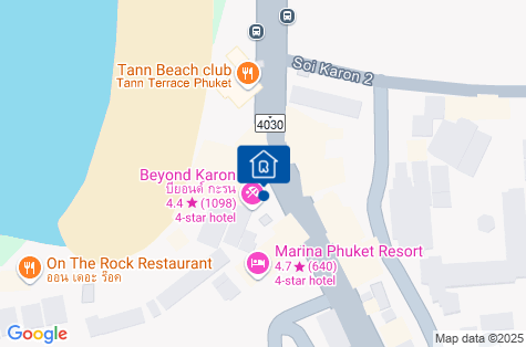 Beyond Karon sa nachádza v malebnej časti thajského ostrova Phuket, v blízkosti pláže, čo je veľkou výhodou. Je obklopený bohatou vegetáciou, ktorá mu dodáva čaro a umožňuje vám plne relaxovať v harmónii s prírodou. V blízkosti sa nachádza vyhliadka (asi 5 km), mys Promthep (asi 8 km) a úžasný budhistický chrám Chalong (asi 13 km). Hotel má tiež výhodnú polohu na medzinárodné letisko Phuket vzdialené približne 48 km.