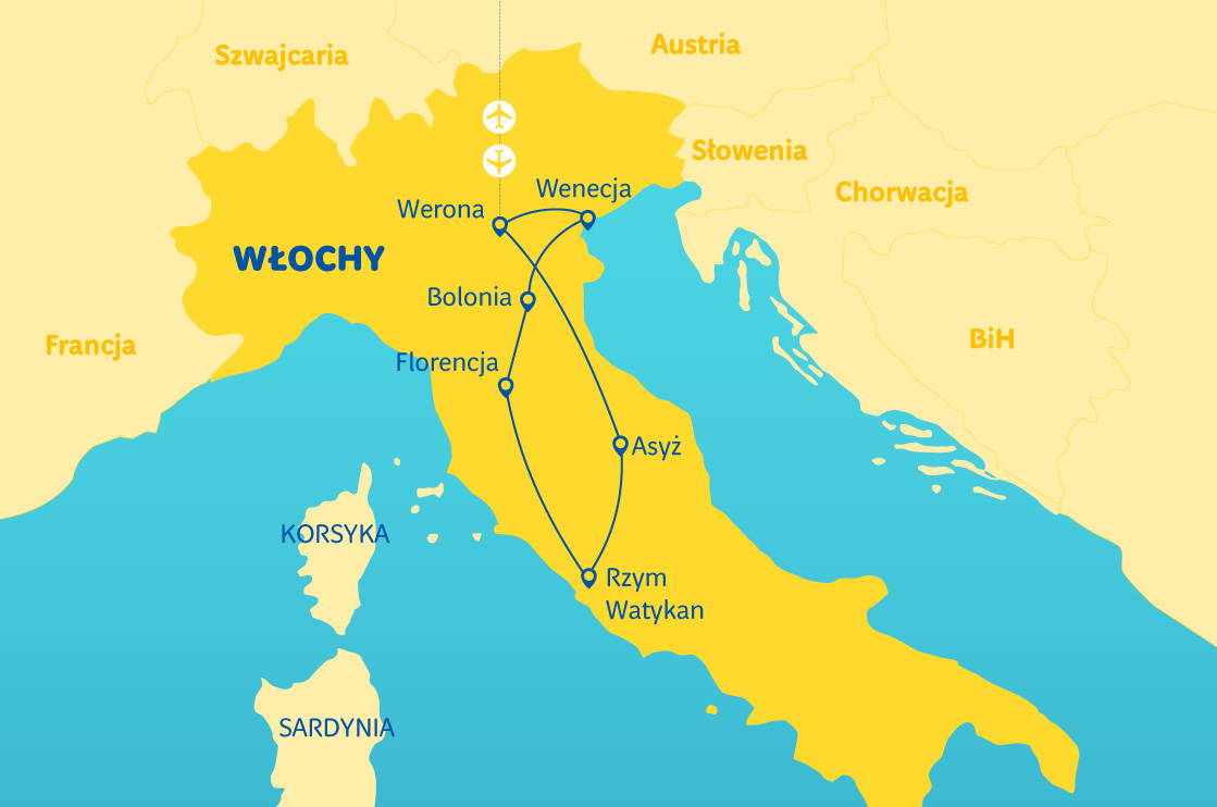 Po časné snídani odjezd z hotelu a přejezd do Assisi, města svatého Františka. Procházka středověkými půvabnými uličkami města. Ve volném čase návštěva baziliky svatého Františka: dolního kostela se světcovým hrobem a horního kostela s překrásnými Giottovými freskami. Odpoledne přejezd do Verony, prohlídka historického centra města, spojeného s dramatem Williama Shakespeara "Romeo a Julie". Poté přejezd do hotelu v okolí Verony na přenocování a večeři.