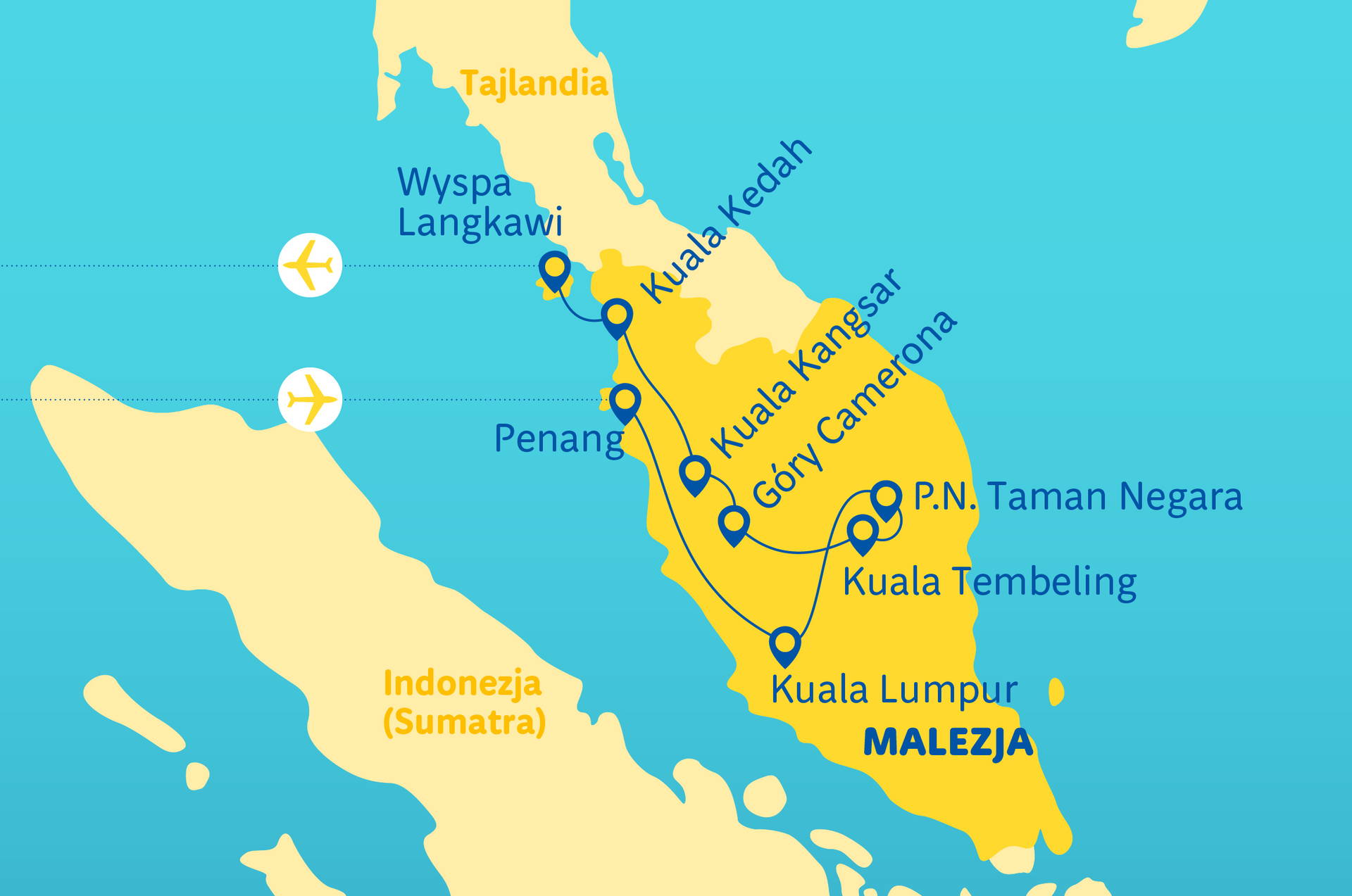 Cena zahrnuje: Let pravidelnou linkou Polsko - Penang a Langkawi - Polsko (s přestupem v Dubaji), ubytování v hotelu (9 započatých nocí v hotelu), transfery klimatizovaným autokarem, stravování dle programu, péči polského zástupce na letišti v Polsku, péči polského pilota během prohlídky, turistický program dle výše uvedeného. a pojištění TU Europa (základní varianta: NNW, KL a zavazadla).